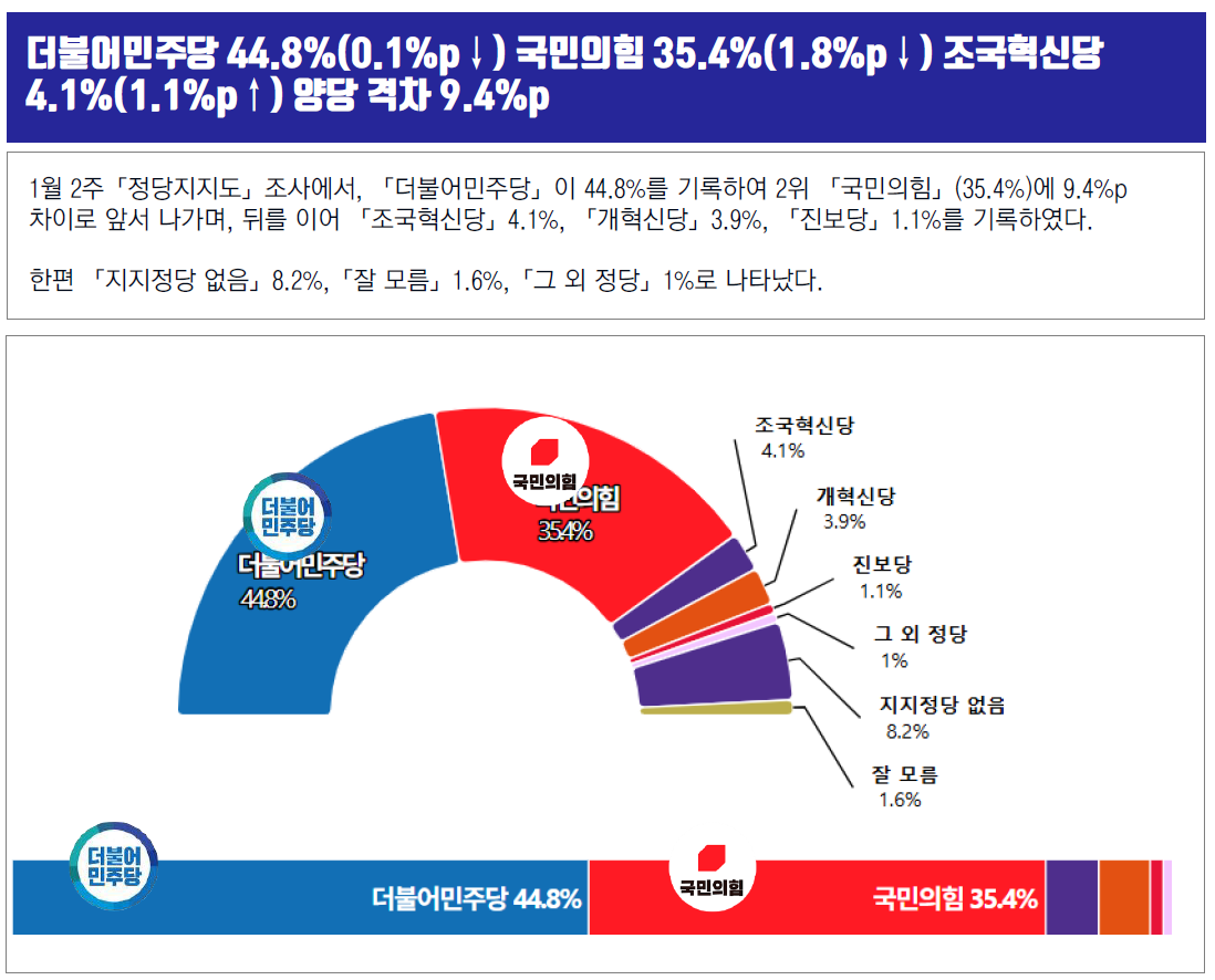 Á¤´çÁöÁöµµ¡¤¡¤¡¤´õºÒ¾î¹ÎÁÖ´ç 44.8%(0.1%p¡é) ±¹¹ÎÀÇÈû 35.4%(1.8%p¡é) Á¶±¹Çõ½Å´ç 4.1%(1.1%p¡è) ¾ç´ç °ÝÂ÷ 9.4%p