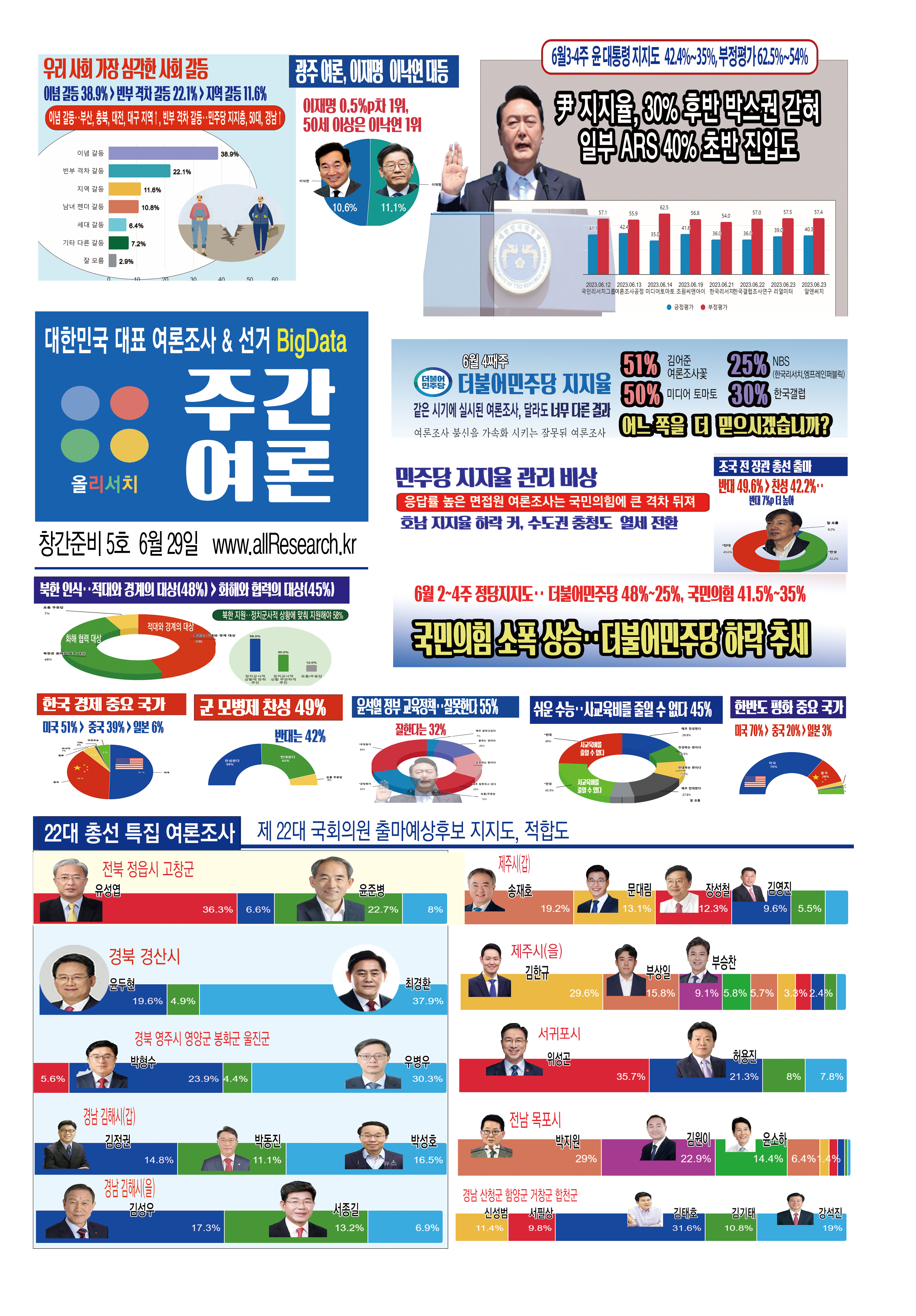17.¸®¾ó¹ÌÅÍ 6¿ù 4ÁÖ¡¥¹ÎÁÖ´ç 43.8%(0.4%p¡é), ±¹¹ÎÀÇÈû 38%(1.2%p¡è),°ÝÂ÷´Â