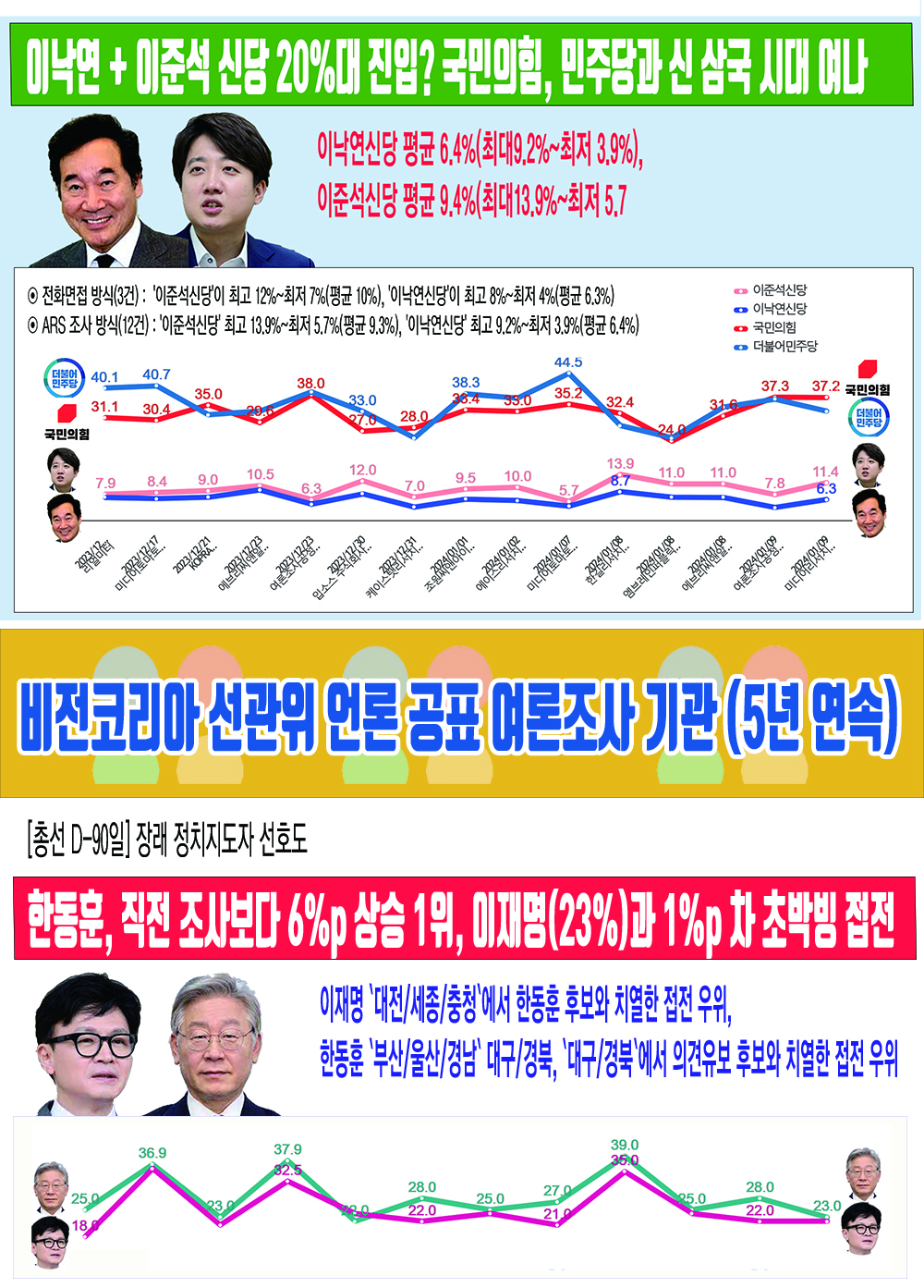 3.Çѵ¿ÈÆ, Á÷Àü Á¶»çº¸´Ù 6%p »ó½Â 1À§, ÀÌÀç¸í(23%)°ú 1%p Â÷ Ãʹںù Á¢Àü