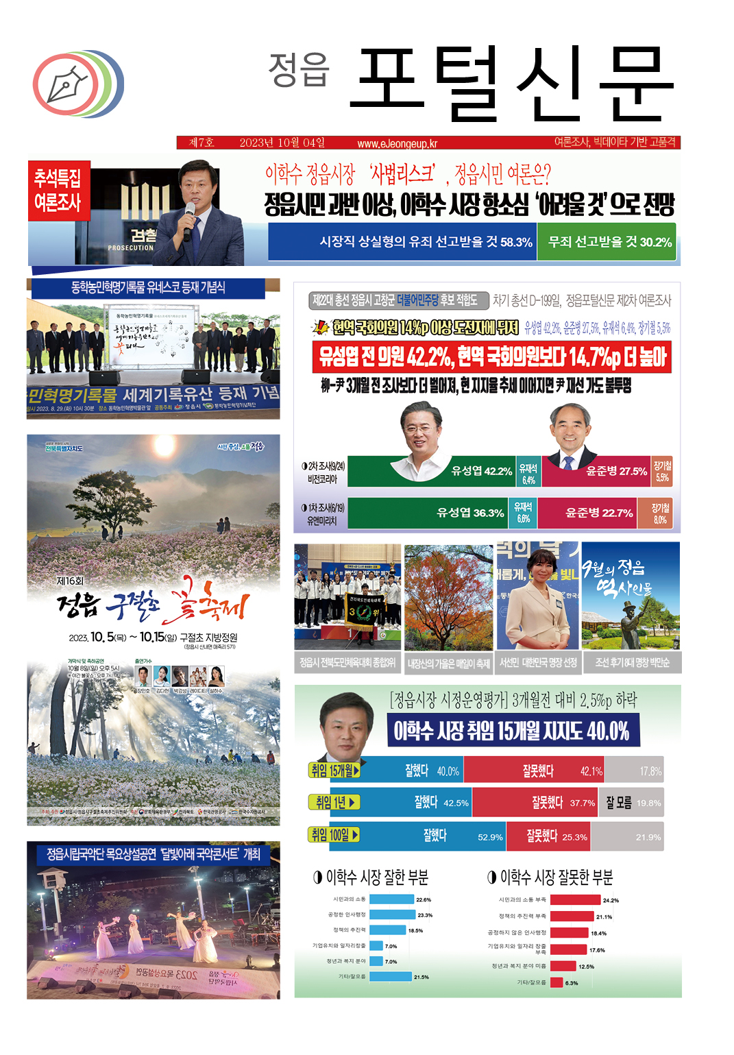 [Ãæ°Ý]Çö ±¹È¸ÀÇ¿ø 14%p ÀÌ»ó µÚÁ®.. ::: Á¤À¾½ÃÀå »ç¹ý¸®½ºÅ© À¯ÁË ¼±°í¹ÞÀ» °Í 58.3%..Ãß¼®Æ¯Áý¿©·ÐÁ¶»ç