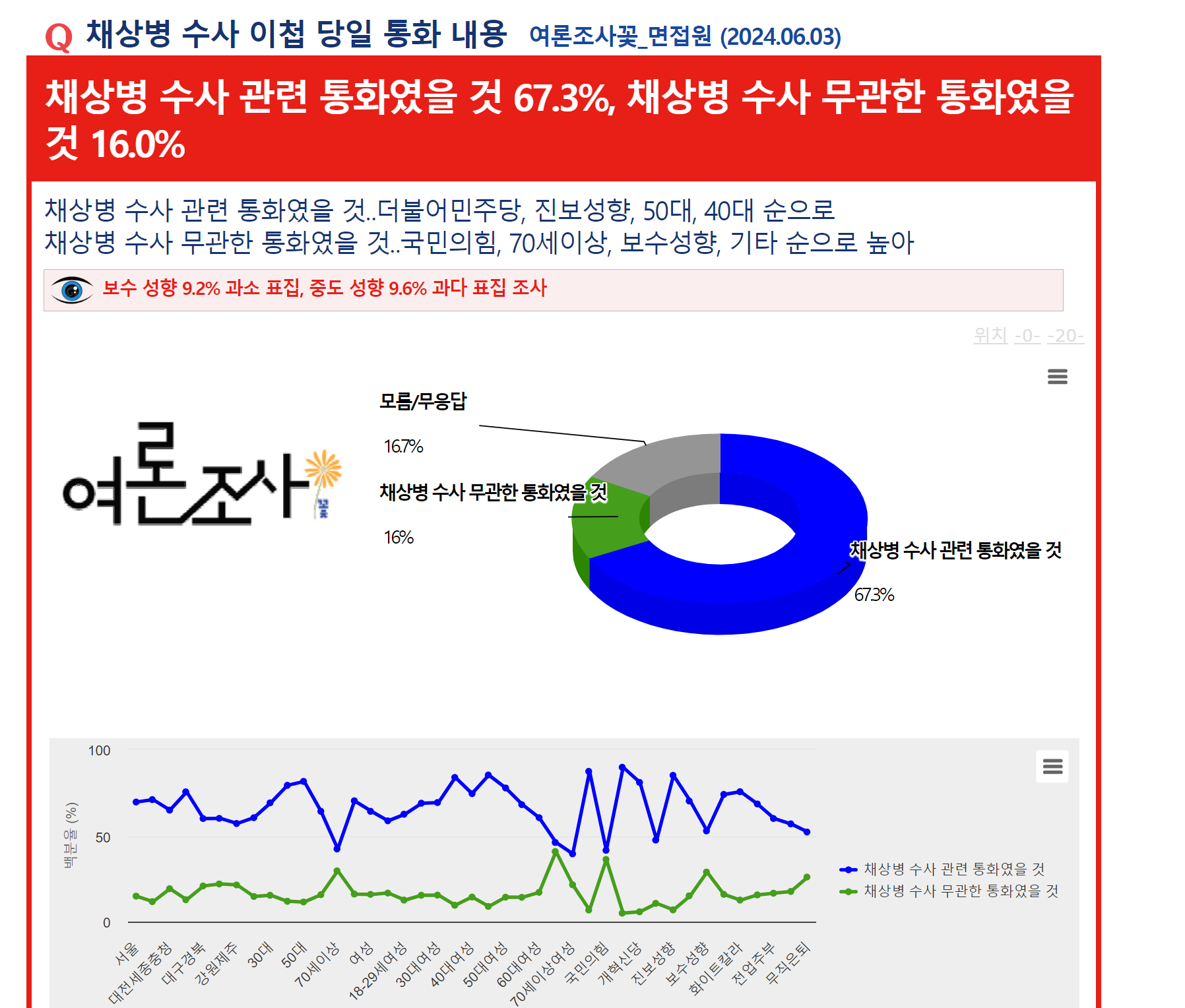 Á¶»ç±â°ü ¿©·ÐÁ¶»ç²ÉÀÌ 5¿ù 31ÀÏ¿¡¼ 1ÀϱîÁö ÀÌÆ²°£ ½Ç½ÃÇÏ¿© 3ÀÏ ¹ßÇ¥ÇÑ ¡¸Ã¤»óº´ ¼ö»ç ÀÌø ´çÀÏ ÅëÈ ³»¿ë¡¹¸¦ ¹¯´Â Á¶»ç¿¡¼ ¡¸Ã¤»óº´ ¼ö»ç °ü·Ã ÅëÈ¿´À» °Í¡¹ÀÌ 67.3%¸¦ ±â·ÏÇÏ¿© 2À§ ¡¸Ã¤»óº´ ¼ö»ç ¹«°üÇÑ ÅëÈ¿´À» °Í¡¹(16%)¿¡ 51.3%p Â÷ÀÌ·Î ¾Õ¼ ³ª°¡´Â °ÍÀ¸·Î ³ªÅ¸³µ´Ù.