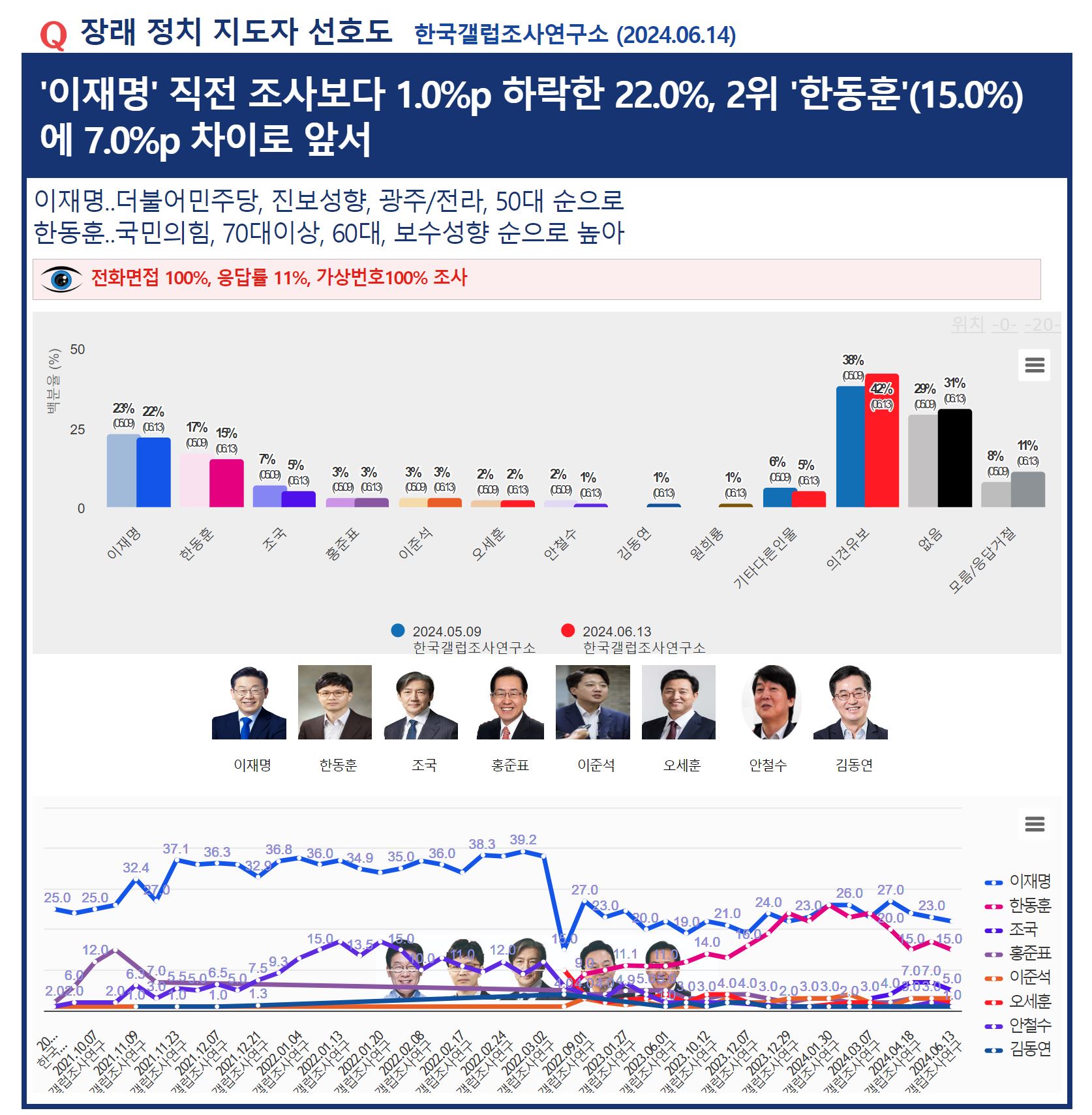 Àå·¡ Á¤Ä¡ ÁöµµÀÚ ¼±È£µµ(Çѱ¹°¶·´Á¶»ç¿¬±¸¼Ò, ÀÀ´ä·ü 11%, 100% ¸éÁ¢¿ø Á¶»ç, 2024.06.14°øÇ¥)