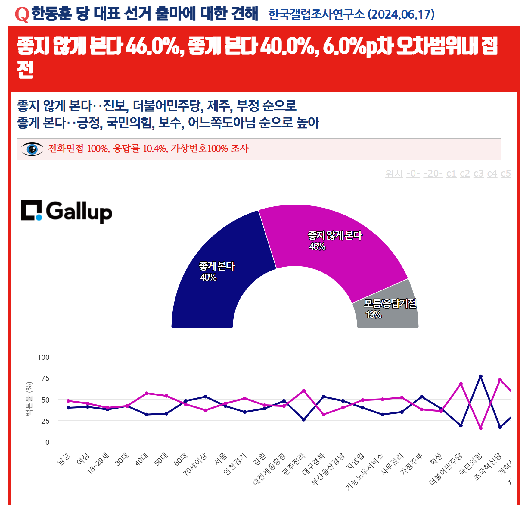 Çѵ¿ÈÆ ´ç ´ëÇ¥ ¼±°Å Ã⸶¿¡ ´ëÇÑ °ßÇØ(Çѱ¹°¶·´Á¶»ç¿¬±¸¼Ò, ÀÀ´ä·ü 10.4%, 100% ¸éÁ¢¿ø Á¶»ç, 2024.06.17°øÇ¥)