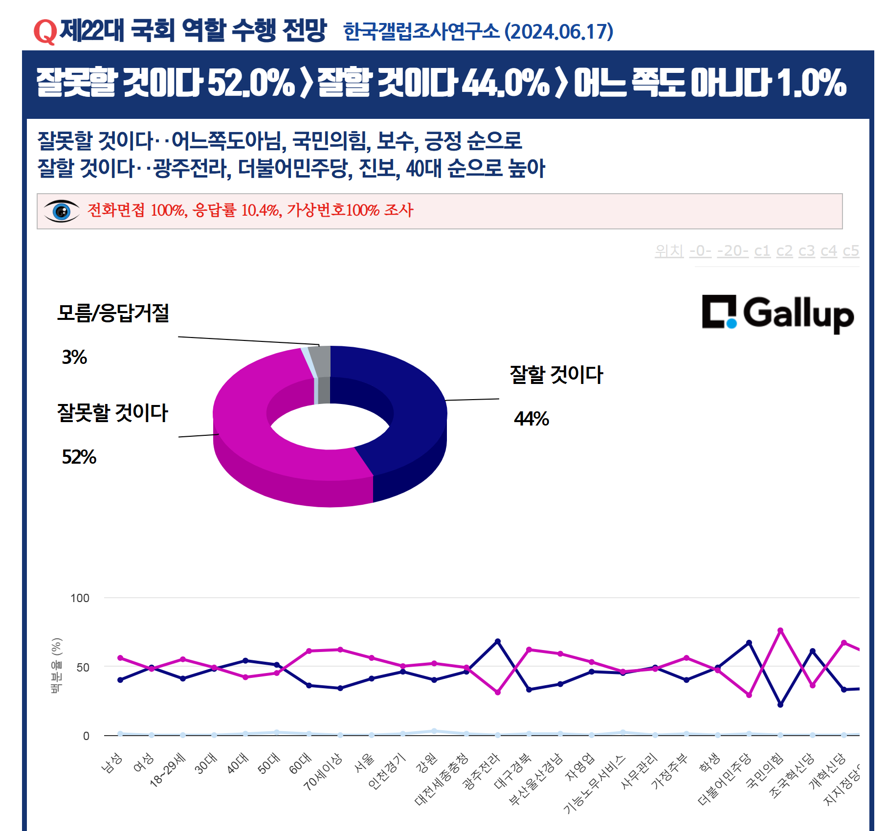 Á¦22´ë ±¹È¸ ¿ªÇÒ ¼öÇà Àü¸Á(Çѱ¹°¶·´Á¶»ç¿¬±¸¼Ò, ÀÀ´ä·ü 10.4%, 100% ¸éÁ¢¿ø Á¶»ç, 2024.06.17°øÇ¥)