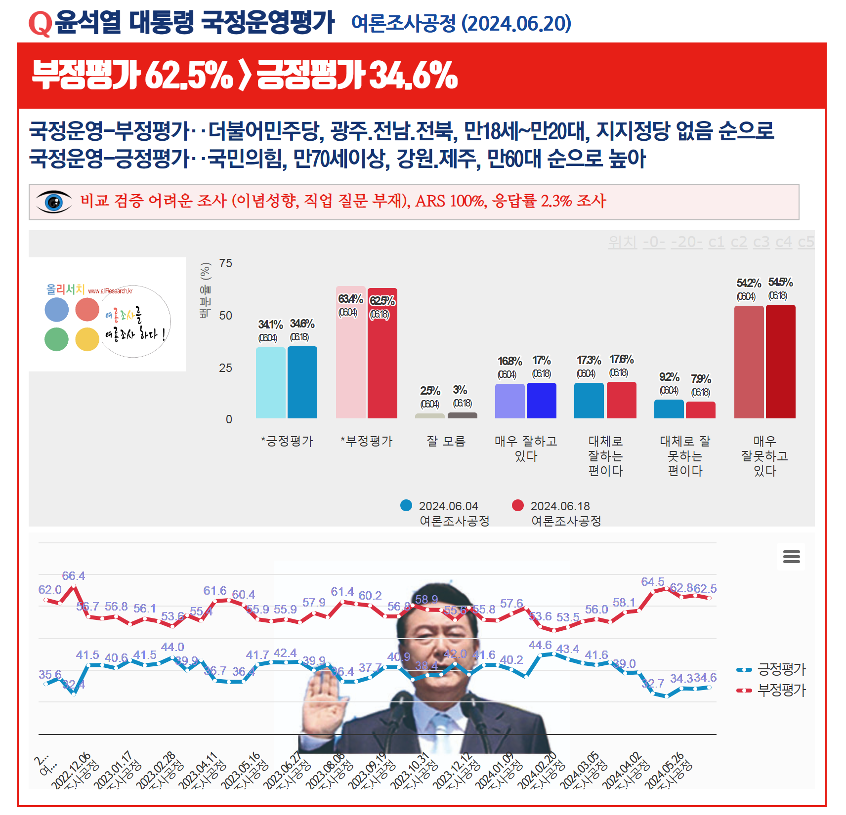À±¼®¿ ´ëÅë·É ±¹Á¤¿î¿µÆò°¡(¿©·ÐÁ¶»ç°øÁ¤, ÀÀ´ä·ü 2.3%, 100% ARS Á¶»ç, 2024.06.20°øÇ¥)