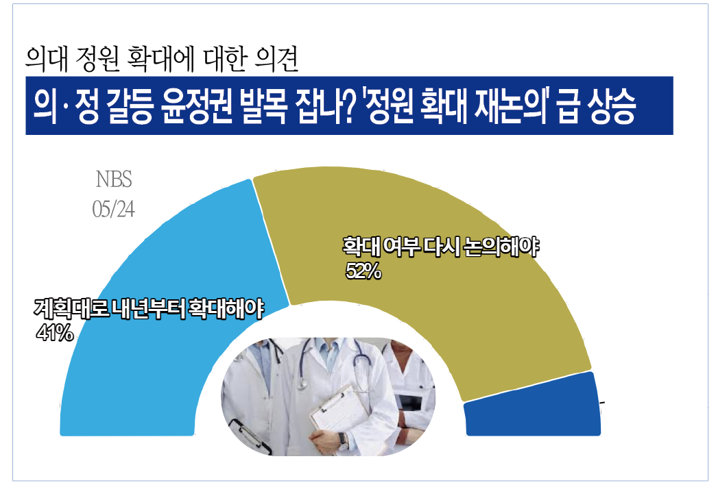 NBS¿¡¼ Áö³ 5ÀÏ ¹ßÇ¥ÇÑ ¿©·ÐÁ¶»ç¿¡¼µµ ¡¸ÀÇ»ç Á¤¿ø È®´ë ¿©ºÎ¸¦ ´Ù½Ã ³íÀÇÇØ¾ß¡¹ÇÑ´Ù´Â ÀÀ´äÀÌ °ú¹ÝÀ» ³Ñ´Â 52%¸¦ ±â·ÏÇß´Ù.
