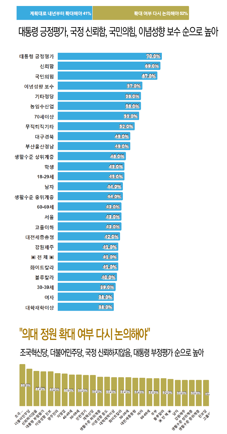 ±¹Á¤¿î¿µ½Å·Úµµ¿¡¼ "´ëÅë·É ½Å·ÚÇÔ" ÀÀ´äÃþÀº ¡¸°èȹ´ë·Î ³»³âºÎÅÍ È®´ëÇØ¾ß¡¹69% > ¡¸È®´ë ¿©ºÎ ´Ù½Ã ³íÀÇÇØ¾ß¡¹21% > ¡¸¸ð¸§/¹«ÀÀ´ä¡¹9% , "´ëÅë·É ½Å·ÚÇÏÁö¾ÊÀ½" ÀÀ´äÃþÀº ¡¸È®´ë ¿©ºÎ ´Ù½Ã ³íÀÇÇØ¾ß¡¹67% > ¡¸°èȹ´ë·Î ³»³âºÎÅÍ È®´ëÇØ¾ß¡¹28% > ¡¸¸ð¸§/¹«ÀÀ´ä¡¹5% ¼øÀ¸·Î ÀÀ´äµÇ¾ú´Ù.