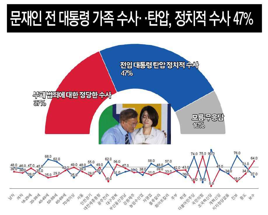 ¡¸¹®ÀçÀÎ Àü ´ëÅë·É Àϰ¡ ¼ö»ç¡¹¿©·ÐÁ¶»ç¿¡¼ 'ÀüÀÓ ´ëÅë·É ź¾Ð Á¤Ä¡Àû ¼ö»ç'°¡ 47%,'ºÎÆÐ ¹üÁË¿¡ ´ëÇÑ Á¤´çÇÑ ¼ö»ç'°¡ 37%ÀÇ ±â·ÏÀ» º¸¿´´Ù.