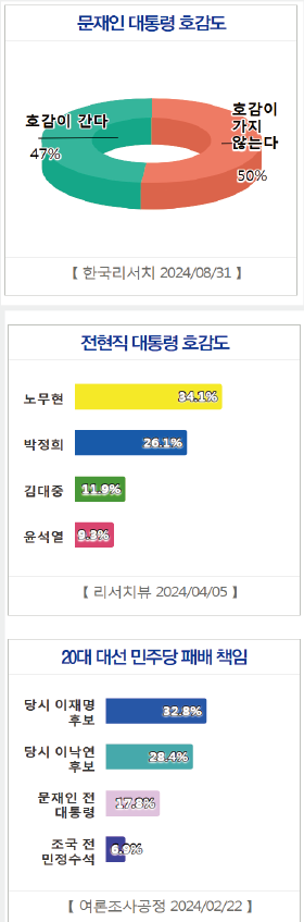 ÁöÁöÁ¤´çº° ÀÀ´ä¿¡¼ "´õºÒ¾î¹ÎÁÖ´ç" ÁöÁöÃþÀº ¡¸ÀüÀÓ ´ëÅë·É ź¾Ð Á¤Ä¡Àû ¼ö»ç¡¹74% > ¡¸ºÎÆÐ ¹üÁË¿¡ ´ëÇÑ Á¤´çÇÑ ¼ö»ç¡¹14% > ¡¸¸ð¸§/¹«ÀÀ´ä¡¹12% , "±¹¹ÎÀÇÈû" ÁöÁöÃþÀº ¡¸ºÎÆÐ ¹üÁË¿¡ ´ëÇÑ Á¤´çÇÑ ¼ö»ç¡¹75% > ¡¸ÀüÀÓ ´ëÅë·É ź¾Ð Á¤Ä¡Àû ¼ö»ç¡¹14% > ¡¸¸ð¸§/¹«ÀÀ´ä¡¹10% , "Á¶±¹Çõ½Å´ç" ÁöÁöÃþÀº ¡¸ÀüÀÓ ´ëÅë·É ź¾Ð Á¤Ä¡Àû ¼ö»ç¡¹90% > ¡¸¸ð¸§/¹«ÀÀ´ä¡¹5% > ¡¸ºÎÆÐ ¹üÁË¿¡ ´ëÇÑ Á¤´çÇÑ ¼ö»ç¡¹5% , "°³Çõ½Å´ç" ÁöÁöÃþÀº ¡¸ºÎÆÐ ¹üÁË¿¡ ´ëÇÑ Á¤´çÇÑ ¼ö»ç¡¹45% > ¡¸ÀüÀÓ ´ëÅë·É ź¾Ð Á¤Ä¡Àû ¼ö»ç¡¹44% > ¡¸¸ð¸§/¹«ÀÀ´ä¡¹10% , "ÁöÁöÁ¤´ç¾øÀ½" ÁöÁöÃþÀº ¡¸ÀüÀÓ ´ëÅë·É ź¾Ð Á¤Ä¡Àû ¼ö»ç¡¹34% > ¡¸ºÎÆÐ ¹üÁË¿¡ ´ëÇÑ Á¤´çÇÑ ¼ö»ç¡¹34% > ¡¸¸ð¸§/¹«ÀÀ´ä¡¹31% ¼øÀ¸·Î °á°ú¸¦ º¸¿´´Ù.