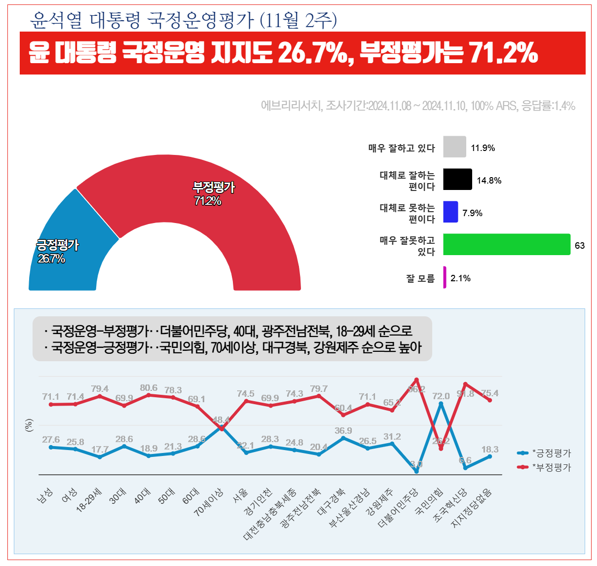 À±¼®¿­ ´ëÅë·É ±¹Á¤¿î¿µÆò°¡(¿¡ºê¸®¸®¼­Ä¡, ÀÀ´ä·ü 1.4%, 100% ARS Á¶»ç, 2024.11.11 °øÇ¥)