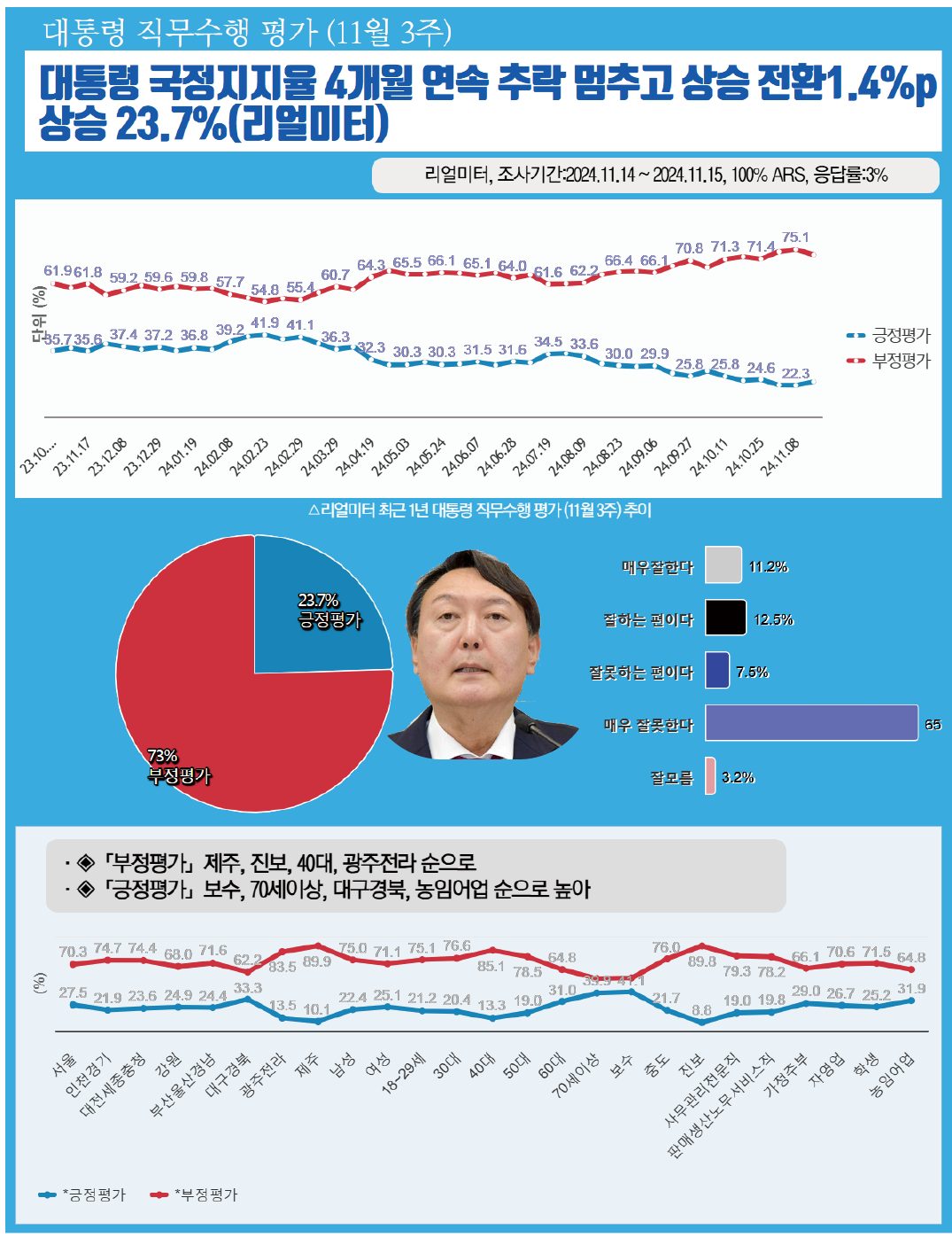 ´ëÅë·É Á÷¹«¼öÇà Æò°¡(¸®¾ó¹ÌÅÍ, ÀÀ´ä·ü 3%, 100% ARS Á¶»ç, 2024.11.17 °øÇ¥)