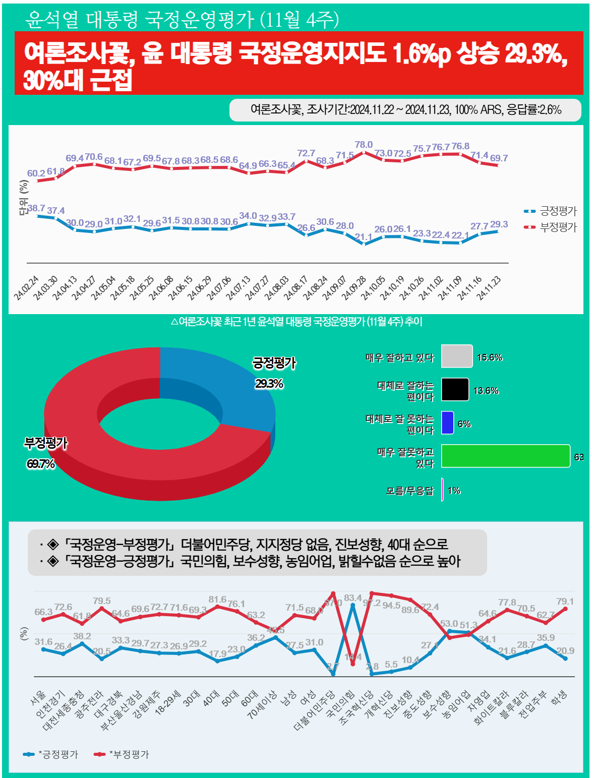 ¤ý±àÁ¤Æò°¡ 1.6%p »ó½Â 29.3%, ºÎÁ¤Æò°¡ 1.7%p Ç϶ô 69.7%