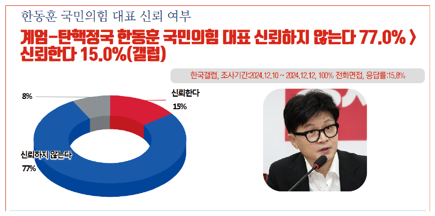 Çѱ¹°¶·´ÀÌ 13ÀÏ ¹ßÇ¥ÇÑ °è¾ö-źÇÙÁ¤±¹ ±¹¸é¿¡¼ Á¶»çµÈ Á¤Ä¡ ÁöµµÀÚµéÀÇ ½Å·Úµµ Á¶»ç¿¡¼ ¡¸Çѵ¿ÈÆ ±¹¹ÎÀÇÈû ´ëÇ¥ ¡¹°¡ 15%¸¦ ¹Þ¾Ò´Ù. '½Å·ÚÇÏÁö ¾Ê´Â´Ù'´Â ÀÀ´äÀº 77%¿¡ ´ÞÇß´Ù.