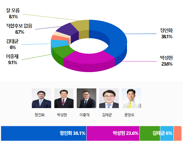 ¡Þ Á¤ÀÎÈ 38.1%, 2À§ ¹Ú¼ºÇö 23.6%º¸´Ù 14.5%p Â÷ÀÌ·Î ¾Õ¼