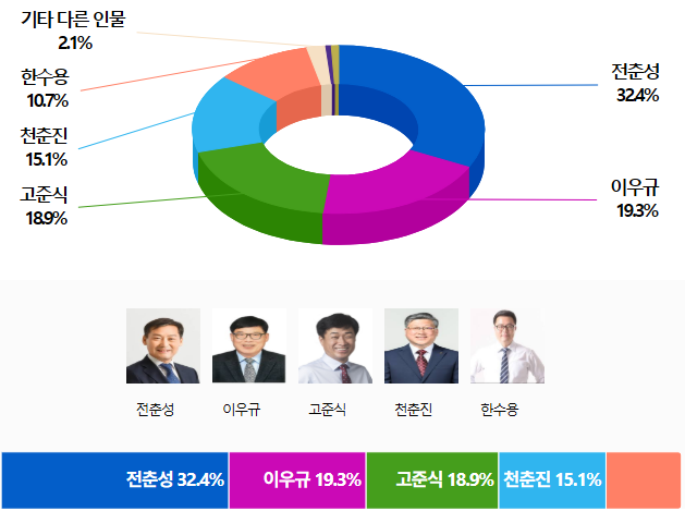 Á¦9ȸ Àü±¹µ¿½ÃÁö¹æ¼±°Å¸¦ 156ÀÏ ¾ÕµÎ°í ½Ç½ÃµÈ ¡¸Àü¶óºÏµµ Áø¾È±º¼ö Èĺ¸ÀûÇÕµµ¡¹¿©·ÐÁ¶»ç¿¡¼ 'ÀüÃἺ' Èĺ¸ 32.4%,'ÀÌ¿ì±Ô' Èĺ¸ 19.3%·Î ³ªÅ¸³µ´Ù.