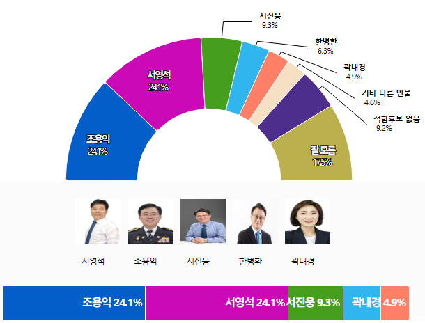 ºÎõ½ÃÀå Èĺ¸ ÀûÇÕµµ¡¤¡¤¡¤¼¿µ¼® 24.1% > Á¶¿ëÀÍ 24.1% > ¼Áø¿õ 9.3%