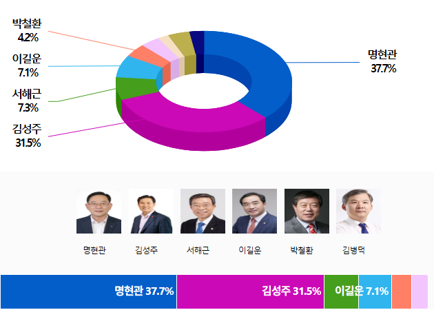 ¡Þ ¸íÇö°ü 37.7%, 2À§ ±è¼ºÁÖ 31.5%º¸´Ù 6.2%p Â÷ÀÌ·Î ¾Õ¼