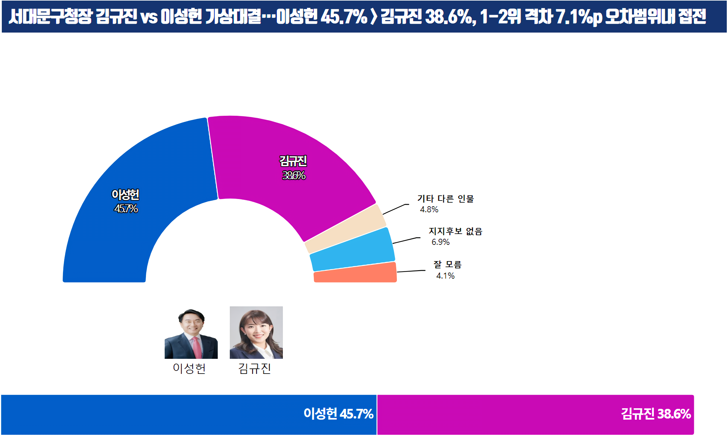 ¤ý¼´ë¹®±¸Ã»Àå ±è±ÔÁø vs À̼ºÇå °¡»ó´ë°á¡¤¡¤¡¤À̼ºÇå 45.7% > ±è±ÔÁø 38.6%, 1-2À§ °ÝÂ÷ 7.1%p ¿ÀÂ÷¹üÀ§³» Á¢Àü
