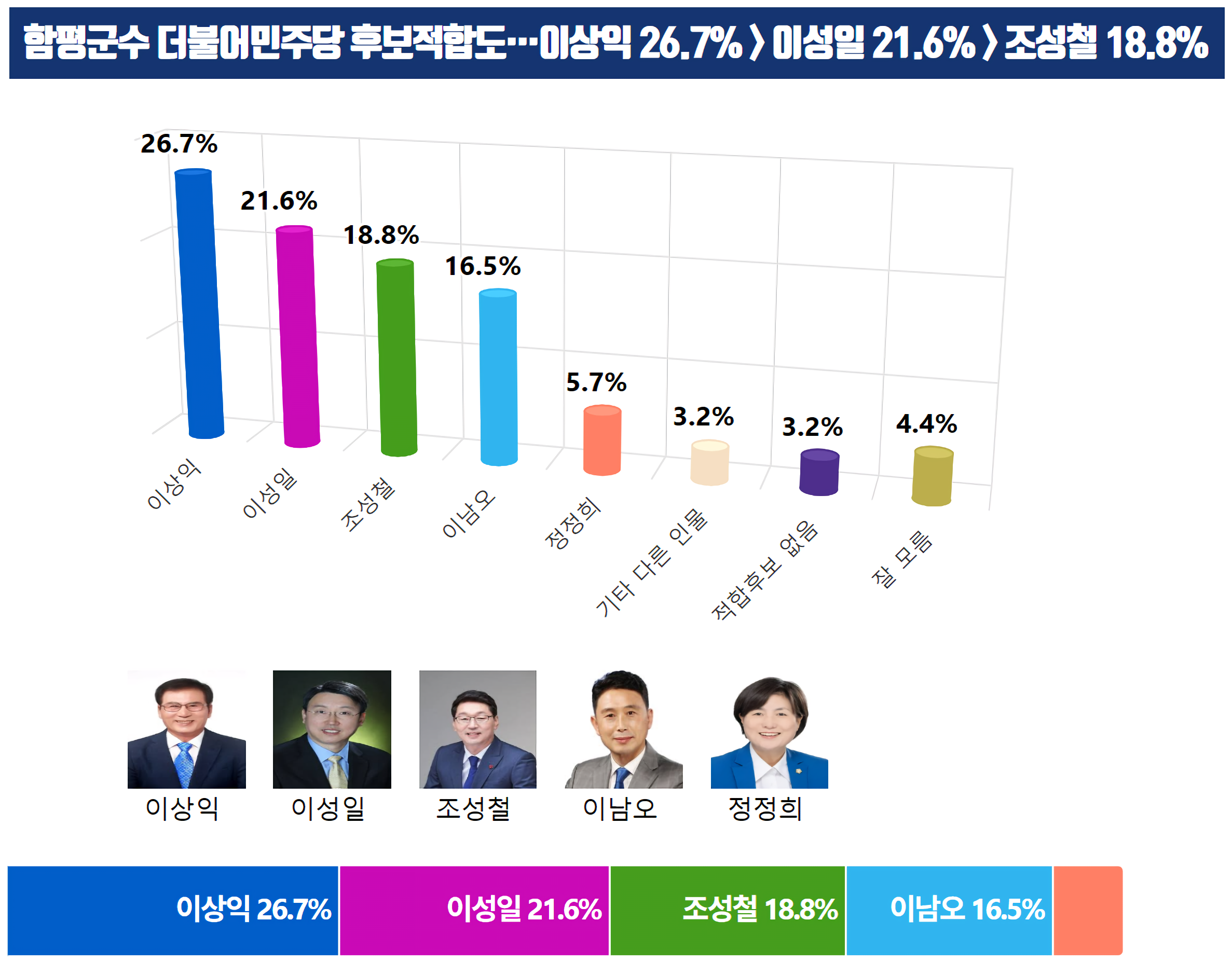 ÇÔÆò±º¼ö ´õºÒ¾î¹ÎÁÖ´ç Èĺ¸ÀûÇÕµµ¡¤¡¤¡¤ÀÌ»óÀÍ 26.7% > À̼ºÀÏ 21.6% > Á¶¼ºÃ¶ 18.8%