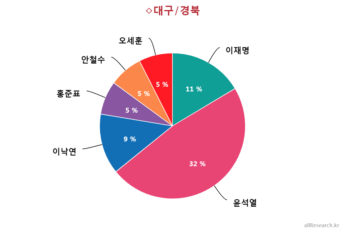 À±¼®¿­ Àü ÃÑÀåÀÇ ÁöÁöµµ´Â ±¹¹ÎÀÇÈû 49%(¡å9.0%), 60¼¼ 38%(¡å7.0%), ´ëÅë·É À߸øÇÔ 32%(¡å9.0%), ´ë±¸/°æºÏ 32%(¡å11.0%), º¸¼ö¼ºÇâ 30%(¡å14.0%), ÀÚ¿µ¾÷ 27%(¡å8.0%), »óÀ§°èÃþ 23%(¡å8.0%), Àü¾÷ÁֺΠ23%(¡å10.0%), ¼­¿ï 23%(¡å4.0%), °íÁ¹ÀÌÇÏ 21%(¡å9.0%), 50´ë 21%, Áßµµ¼ºÇâ 20%(¡å4.0%), ³²¼º 20%(¡å6.0%), 70¼¼ ÀÌ»ó 19%(¡å22.0%), ºí·çÄ®¶ó 18%(¡å2.0%), ÀÎõ/°æ±â 18%(¡å6.0%), ÇÏÀ§°èÃþ 17%(¡å4.0%), ÁßÀ§°èÃþ 17%(¡å7.0%), ±¹¹ÎÀÇ´ç 17%(¡å22.0%), Àü¹®´ë ÀçÇÐÀÌ»ó 16%(¡å6.0%), ¿©¼º 16%(¡å8.0%), È­ÀÌÆ®Ä®¶ó 14%(¡å4.0%), 40´ë 13%(¡å4.0%), °­¿ø/Á¦ÁÖ 12%(¡å4.0%), ºÎ»ê/¿ï»ê/°æ³² 12%(¡å16.0%), ´ëÀü/¼¼Á¾/ÃæÃ» 12%(¡å9.0%), ¹«´çÃþ 11%(¡å8.0%), 30´ë 11%(¡å8.0%), Á¤ÀÇ´ç 8%(¡å5.0%), 18-29¼¼ 8%(¡å3.0%), Çлý 7%(¡å5.0%), Áøº¸¼ºÇâ 7%(¡â1.0%), ±¤ÁÖ/Àü¶ó 5%(¡å2.0%)¼øÀ¸·Î ±¸¼ºµÇ¾î ÀÖ´Â °ÍÀ¸·Î ³ªÅ¸³µ´Ù. (°ýÈ£¾ÈÀº Áö³­ÁÖ ´ëºñ µî¶ôÀ²)