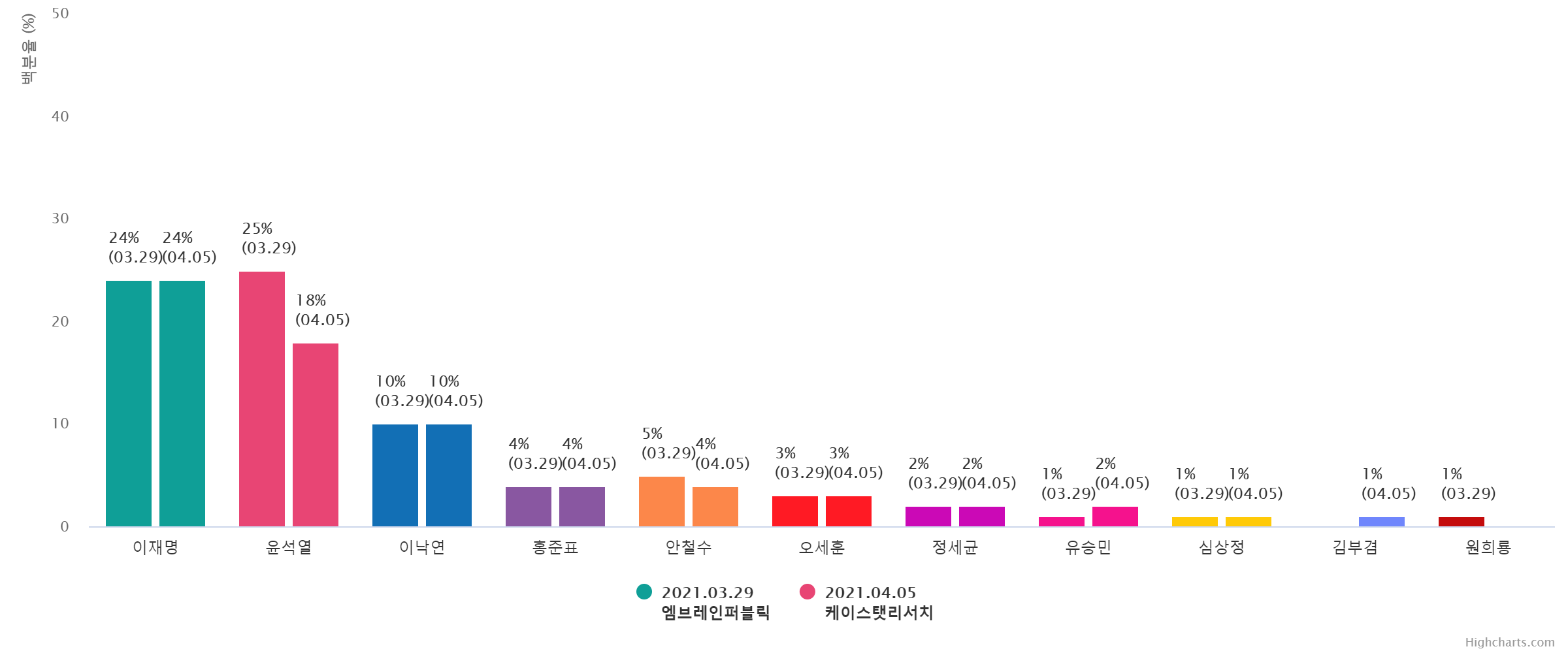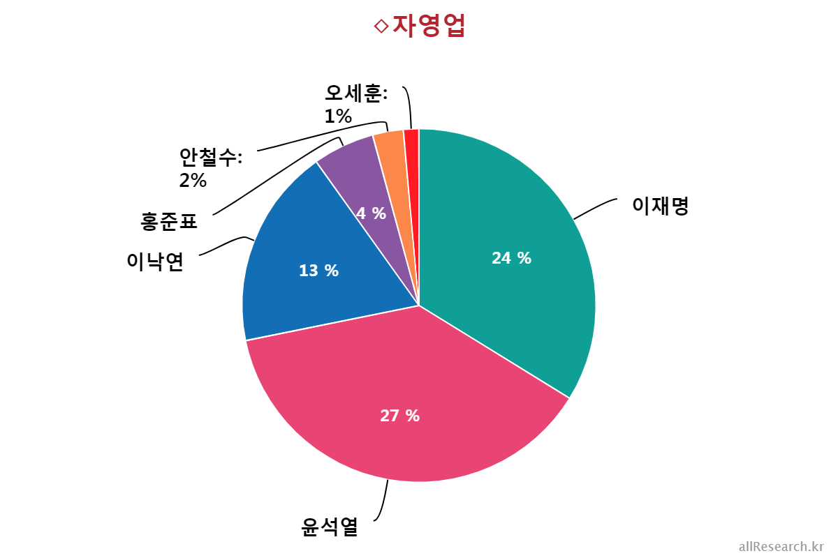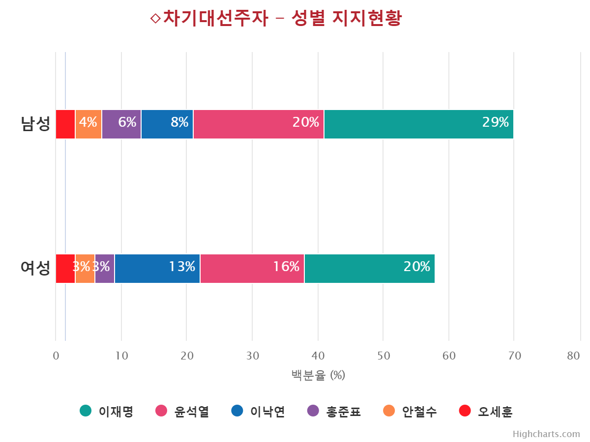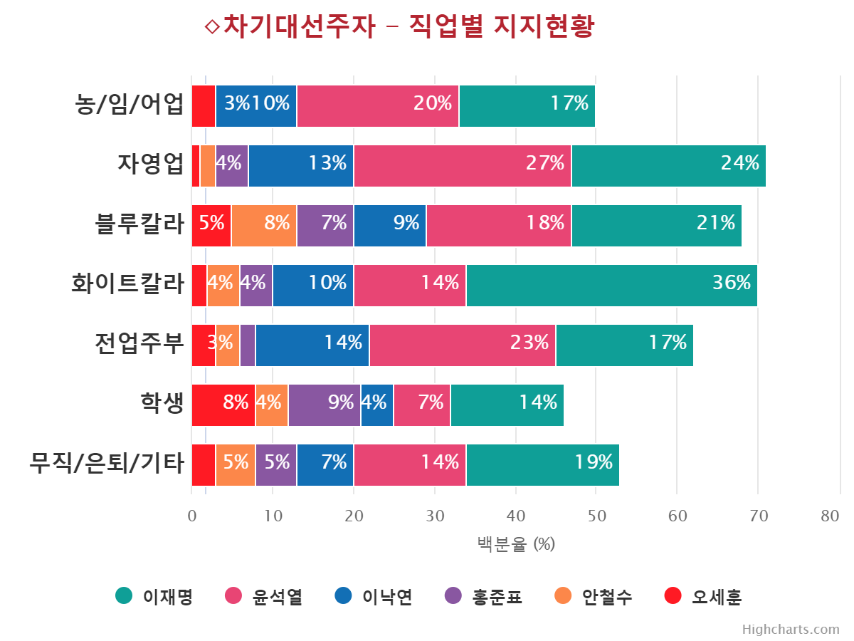 À±¼®¿­ Èĺ¸ÀÇ ÁöÁöÀ² Ç϶ôÀ» ÁÖµµÇÑ ÀÀ´äÃþÀº ±¹¹ÎÀÇ´ç(39.0%¡æ17.0%,¡å22.0%), 70¼¼ ÀÌ»ó(41.0%¡æ19.0%,¡å22.0%), ºÎ»ê/¿ï»ê/°æ³²(28.0%¡æ12.0%,¡å16.0%), º¸¼ö¼ºÇâ(44.0%¡æ30.0%,¡å14.0%), ´ë±¸/°æºÏ(43.0%¡æ32.0%,¡å11.0%), Àü¾÷ÁÖºÎ(33.0%¡æ23.0%,¡å10.0%), ´ëÅë·É À߸øÇÔ(41.0%¡æ32.0%,¡å9.0%), °íÁ¹ÀÌÇÏ(30.0%¡æ21.0%,¡å9.0%), ±¹¹ÎÀÇÈû(58.0%¡æ49.0%,¡å9.0%), ´ëÀü/¼¼Á¾/ÃæÃ»(21.0%¡æ12.0%,¡å9.0%), »óÀ§°èÃþ(31.0%¡æ23.0%,¡å8.0%), ÀÚ¿µ¾÷(35.0%¡æ27.0%,¡å8.0%), ¹«´çÃþ(19.0%¡æ11.0%,¡å8.0%), 30´ë(19.0%¡æ11.0%,¡å8.0%), ¿©¼º(24.0%¡æ16.0%,¡å8.0%), ÁßÀ§°èÃþ(24.0%¡æ17.0%,¡å7.0%), 60¼¼(45.0%¡æ38.0%,¡å7.0%), Àü¹®´ë ÀçÇÐÀÌ»ó(22.0%¡æ16.0%,¡å6.0%), ÀÎõ/°æ±â(24.0%¡æ18.0%,¡å6.0%), ³²¼º(26.0%¡æ20.0%,¡å6.0%), Çлý(12.0%¡æ7.0%,¡å5.0%), Á¤ÀÇ´ç(13.0%¡æ8.0%,¡å5.0%), ÇÏÀ§°èÃþ(21.0%¡æ17.0%,¡å4.0%), È­ÀÌÆ®Ä®¶ó(18.0%¡æ14.0%,¡å4.0%), Áßµµ¼ºÇâ(24.0%¡æ20.0%,¡å4.0%), °­¿ø/Á¦ÁÖ(16.0%¡æ12.0%,¡å4.0%), ¼­¿ï(27.0%¡æ23.0%,¡å4.0%), 40´ë(17.0%¡æ13.0%,¡å4.0%), 18-29¼¼(11.0%¡æ8.0%,¡å3.0%), ´ëÅë·É ÀßÇÔ(3.0%¡æ1.0%,¡å2.0%), ºí·çÄ®¶ó(20.0%¡æ18.0%,¡å2.0%), ±¤ÁÖ/Àü¶ó(7.0%¡æ5.0%,¡å2.0%)¼øÀ¸·Î ´ëºÎºÐÀÇ ÀÀ´äÃþ¿¡¼­ Ç϶ô¼¼¸¦ º¸¿´´Ù.