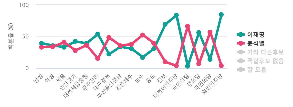 À±¼®¿­ Àü ÃÑÀå°ú ÀÌÀç¸í Èĺ¸ÀÇ ÁöÁö ÀÀ´äÃþÀº ¾Æ·¡¿Í °°ÀÌ ºÐ¼®µÇ¾ú´Ù.