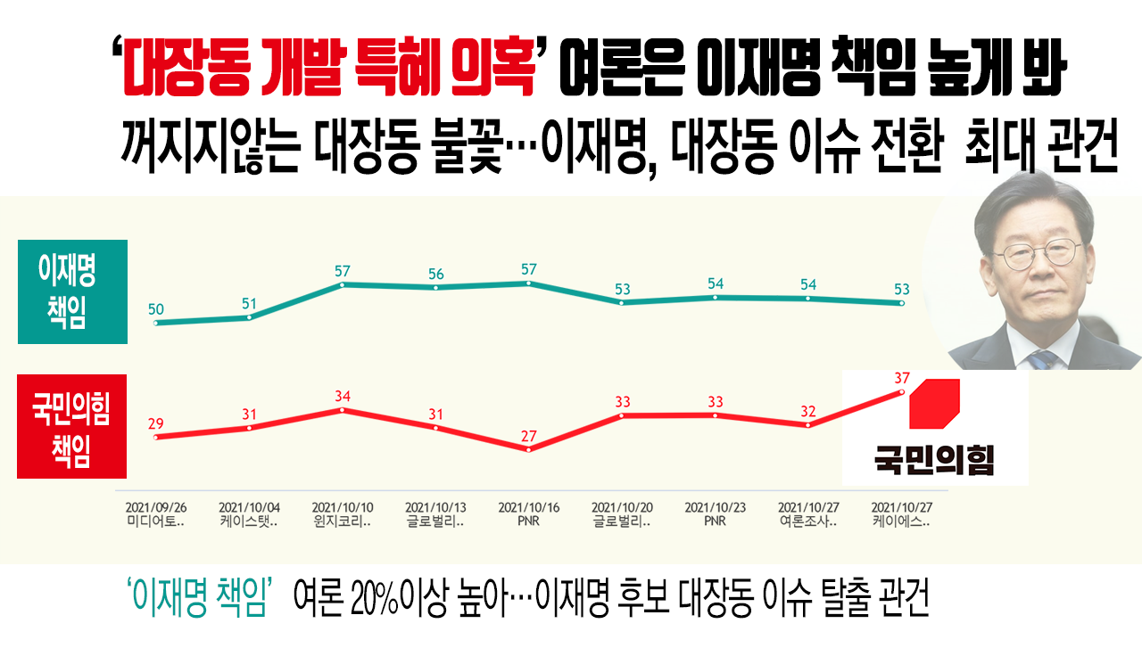 Á¶»ç±â°ü ÄÉÀÌ¿¡½º¿À¾ÆÀ̰¡ ¾ð·Ð»ç Çì·²µå°æÁ¦ ÀÇ·Ú·Î 10¿ù 26ÀÏ~27ÀϱîÁö ÀÌÆ²°£ ½Ç½ÃÇÏ¿© 29ÀÏ ¹ßÇ¥ÇÑ ¡®´ëÀ嵿 °³¹ß ƯÇý ÀÇȤ Ã¥ÀÓ¡¯ °ü·Ã ¿©·ÐÁ¶»ç¿¡¼ ¡¸ÀÌÀç¸í Ã¥ÀÓ ´õ Å©´Ù¡¹ 53.2%,¡¸±¹¹ÎÀÇÈû Ã¥ÀÓ ´õ Å©´Ù¡¹ 37.4%·Î, ¡¸ÀÌÀç¸í Ã¥ÀÓ ´õ Å©´Ù¡¹ ¿©·ÐÀÌ 15.8% Æ÷ÀÎÆ® ´õ ³ôÀº °ÍÀ¸·Î ³ªÅ¸³µ´Ù.