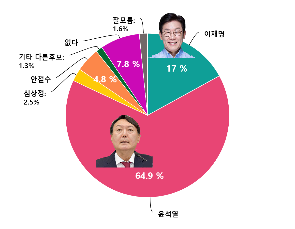 ¿©·ÐÁ¶»ç¿¡¼­ ±¹¹ÎÀÇÈû ¡¸À±¼®¿­¡¹È常¦ ÁöÁöÇÑ´Ù´Â ÀÀ´äÀÌ 64.9%, ´õºÒ¾î¹ÎÁÖ´ç ÀÌÀç¸í È帴 17%·Î, ¡¸À±¼®¿­¡¹È帰¡ 47.9%Æ÷ÀÎÆ®¶ó´Â ¾ÐµµÀûÀÎ Â÷ÀÌ·Î 1À§¸¦ ÇÏ´Â °ÍÀ¸·Î ³ªÅ¸³µ´Ù.