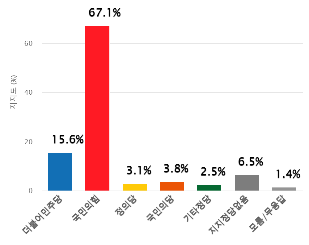 °æÁֽà Á¤´çÁöÁöµµ ±¹¹ÎÀÇÈû 67.1% vs ´õºÒ¾î¹ÎÁÖ´ç 15.6%