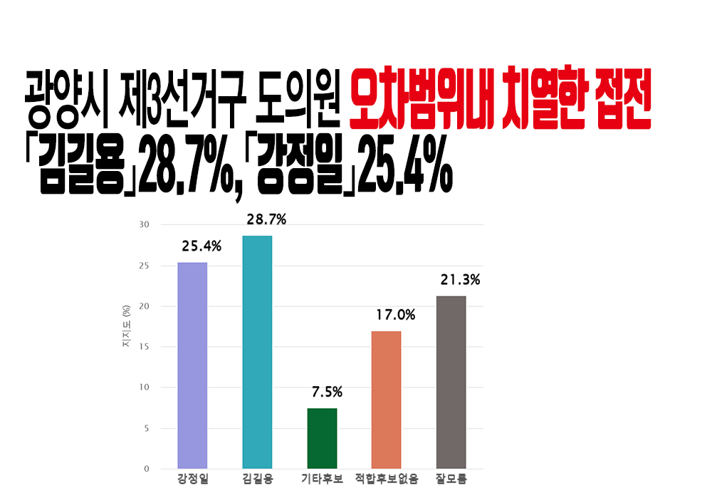 ±¤¾ç½Ã Á¦3¼±°Å±¸ µµÀÇ¿ø ¡¸±è±æ¿ë¡¹28.7%,¡¸°Á¤ÀÏ¡¹25.4% ¿ÀÂ÷¹üÀ§³» Ä¡¿ÇÑ Á¢Àü