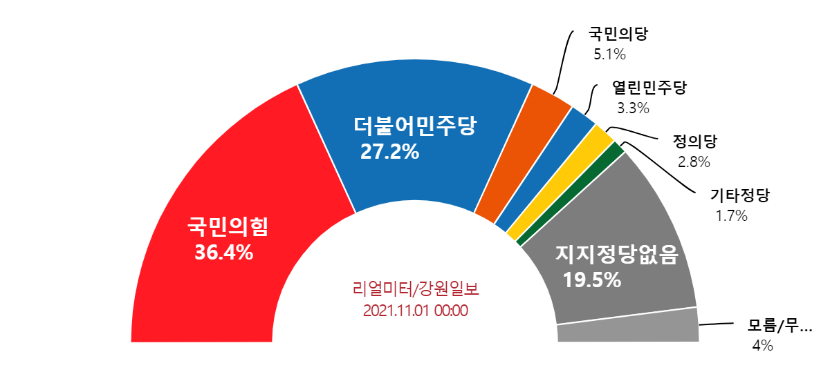 ¼ÓÃʽà Á¤´çÁöÁöµµ ¡¸±¹¹ÎÀÇÈû¡¹36.4% > ¡¸´õºÒ¾î¹ÎÁִ硹27.2%