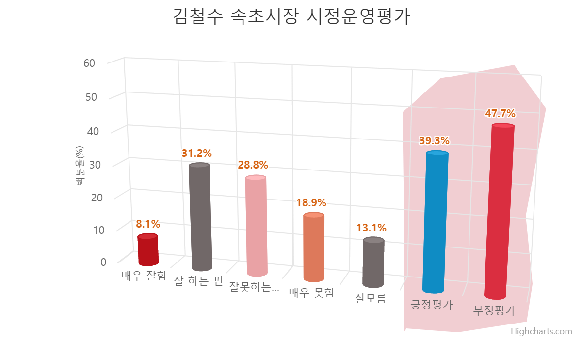 ¤ý±èö¼ö ¼ÓÃʽÃÀå ½ÃÁ¤¿î¿µÆò°¡ ¡¸ºÎÁ¤Æò°¡¡¹47.7% > ¡¸±àÁ¤Æò°¡¡¹39.3%