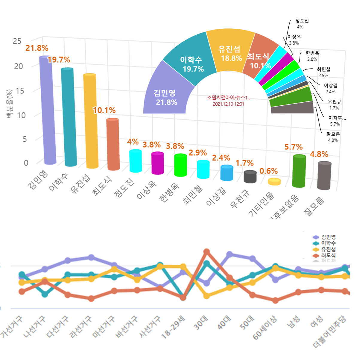 ¡ãÁ¤À¾½ÃÀå Èĺ¸ ÁöÁöµµ ¢¹¡¸±è¹Î¿µ¡¹21.8%,¡¸ÀÌÇмö¡¹19.7%,¡¸À¯Áø¼·¡¹18.8%,¡¸ÃÖµµ½Ä¡¹10.1%,¡¸Á¤µµÁø¡¹4%,¡¸ÇѺ´¿Á¡¹3.8%,¡¸ÀÌ»ó¿Á¡¹3.8%,¡¸ÃÖ¹Îö¡¹2.9%,¡¸ÀÌ»ó±æ¡¹2.4%,¡¸¿ìõ±Ô¡¹1.7%¼ø
