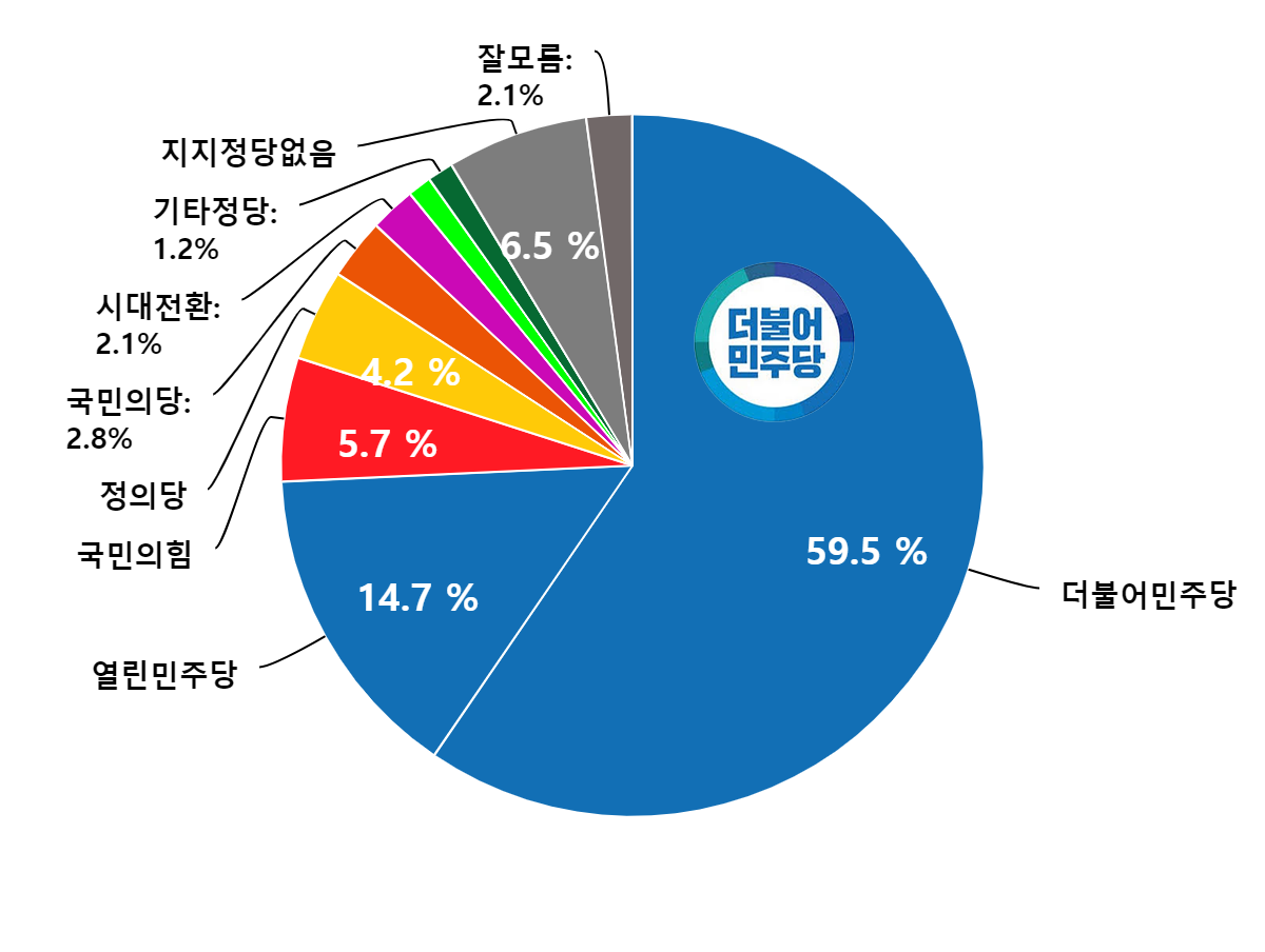 ¤ýÁ¤À¾½Ã Á¤´çÁöÁöµµ ¡¸´õºÒ¾î¹ÎÁִ硹59.5%,¡¸¿¸°¹ÎÁִ硹14.7%,¡¸±¹¹ÎÀÇÈû¡¹5.7%,¡¸Á¤ÀǴ硹4.2%