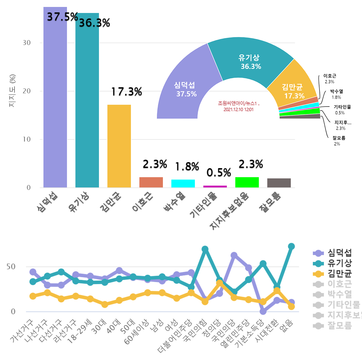 ¾ð·Ð»ç ´º½º1 ÀüºÏÃëÀ纻ºÎ ÀÇ·Ú·Î 12¿ù 7ÀÏ~9ÀϱîÁö »çÈê°£ ½Ç½ÃÇÏ¿© 10ÀÏ ¹ßÇ¥ÇѰíⱺ¼ö Èĺ¸ ÁöÁöµµ¸¦ ¹¯´Â ¿©·ÐÁ¶»ç¿¡¼ ½É´ö¼· Çö ¹ÎÁÖ´ç ÀüºÏµµ´ç ³ëÀ»´ë±³ °Ç¸³Æ¯º°À§¿øÀåÀÌ 37.5%¸¦ ±â·ÏÇÏ¿© 2À§ À¯±â»ó Çö °íⱺ¼ö(36.3%)¿Í 1.2%Æ÷ÀÎÆ® Â÷ÀÌ·Î ¼±µÎ¸¦ ÁöŰ´Â °ÍÀ¸·Î ³ªÅ¸³µ´Ù. µÚ¸¦ ÀÌ¾î ±è¸¸±Õ Çö ¹ÎÁÖ´ç ÀüºÏµµ´ç ȯ°æº¸ÀüƯº°À§¿øÀåÀÌ 17.3%·Î 3À§, ÀÌÈ£±Ù Àü ÀüºÏµµÀÇ¿øÀÌ 2.3%·Î 4À§, ¹Ú¼ö¿ Çö ¹ÎÁÖ´ç Á¤À¾°íâ ȯ°æº¸È£Æ¯º°À§¿øÀåÀÌ 1.8%·Î 5À§¸¦ ÇÏ´Â °ÍÀ¸·Î ³ªÅ¸³µ´Ù.