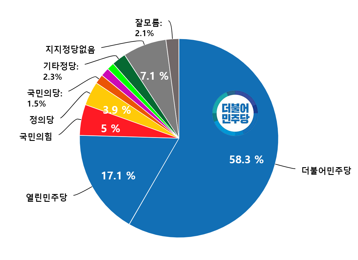 °íⱺ Á¤´çÁöÁöµµ ¡¸´õºÒ¾î¹ÎÁִ硹58.3%,¡¸¿¸°¹ÎÁִ硹17.1%,¡¸±¹¹ÎÀÇÈû¡¹5%,¡¸Á¤ÀǴ硹3.9%