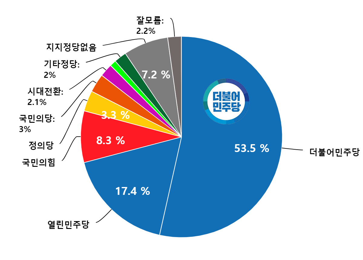 ±èÁ¦½Ã Á¤´çÁöÁöµµ ¡¸´õºÒ¾î¹ÎÁִ硹53.5%,¡¸¿¸°¹ÎÁִ硹17.4%,¡¸±¹¹ÎÀÇÈû¡¹8.3%,¡¸Á¤ÀǴ硹3.3%