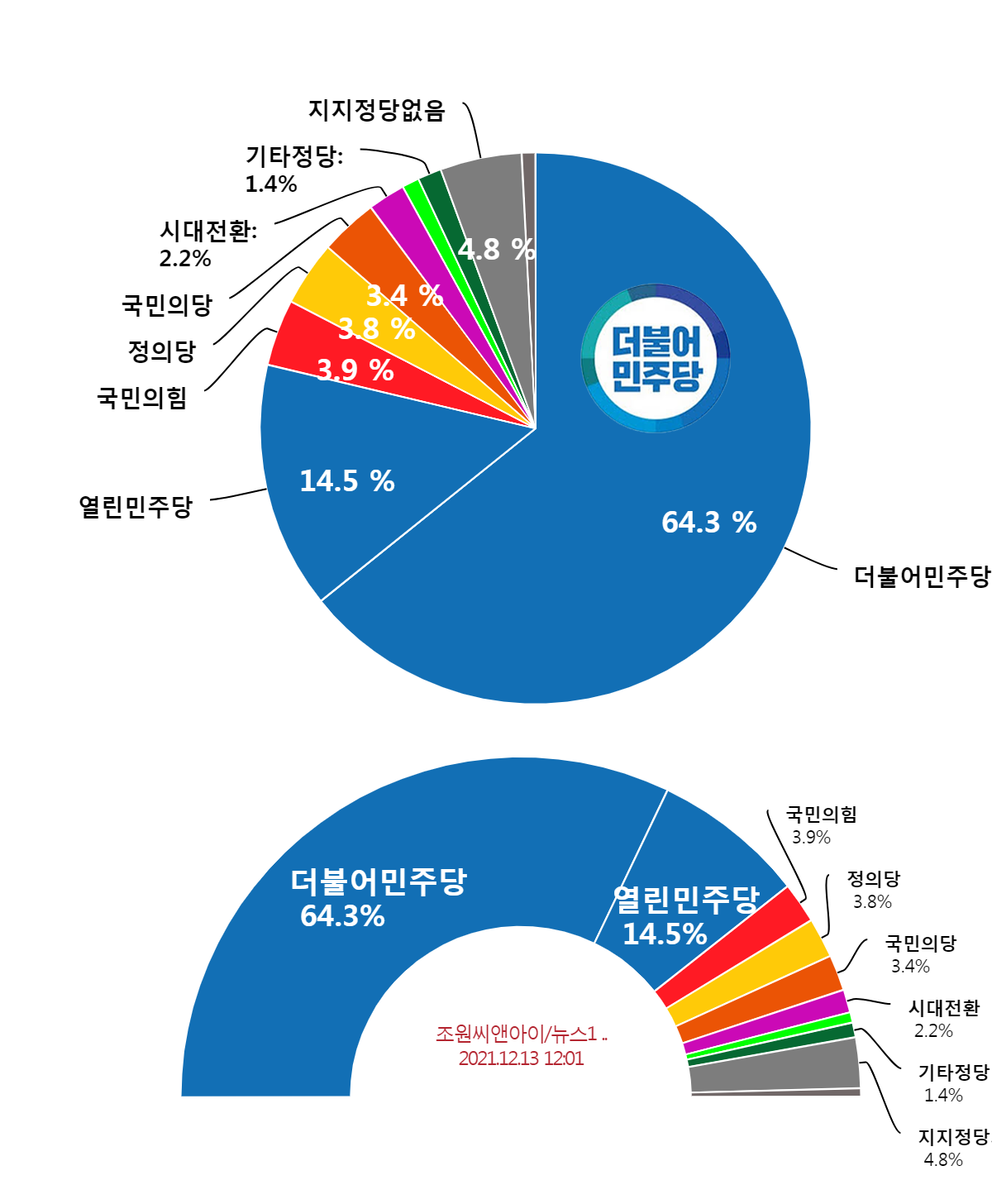 ÀӽDZº Á¤´çÁöÁöµµ ¢¹¡¸´õºÒ¾î¹ÎÁִ硹64.3%,¡¸¿­¸°¹ÎÁִ硹14.5%,¡¸±¹¹ÎÀÇÈû¡¹3.9%,¡¸Á¤ÀǴ硹3.8%