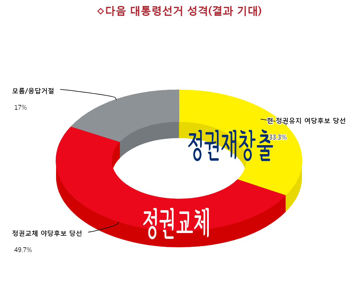 ¡ãõ¾È½Ã ´ÙÀ½ ´ëÅë·É¼±°Å ¼º°Ý(°á°ú ±â´ë) ¢¹¡¸Á¤±Ç±³Ã¼ ¾ß´çÈĺ¸ ´ç¼±¡¹49.7%,¡¸Çö Á¤±ÇÀ¯Áö ¿©´çÈĺ¸ ´ç¼±¡¹33.3%¼øÀ¸·Î ³ªÅ¸³ª