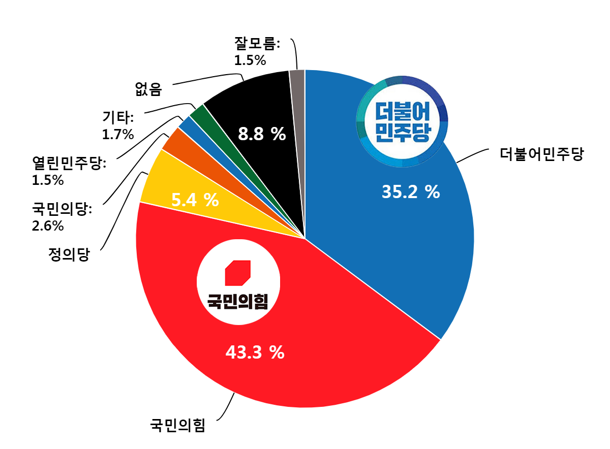 ¤ýõ¾È½Ã Á¤´çÁöÁöµµ ¢¹¡¸±¹¹ÎÀÇÈû¡¹43.3%,¡¸´õºÒ¾î¹ÎÁִ硹35.2%,¡¸Á¤ÀǴ硹5.4%