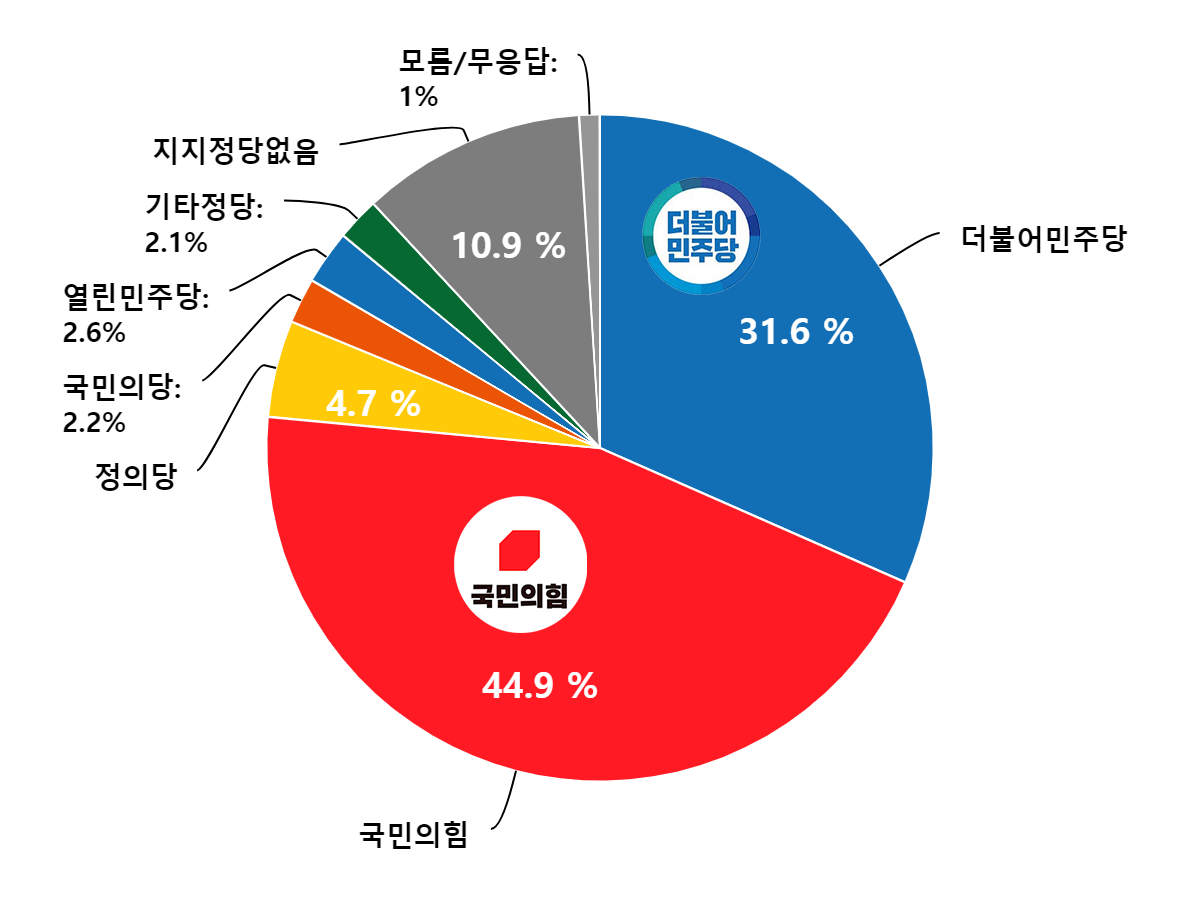 ¤ý´ëÀü½Ã Á¤´çÁöÁöµµ ¢¹¡¸±¹¹ÎÀÇÈû¡¹44.9% vs ¡¸´õºÒ¾î¹ÎÁִ硹31.6%