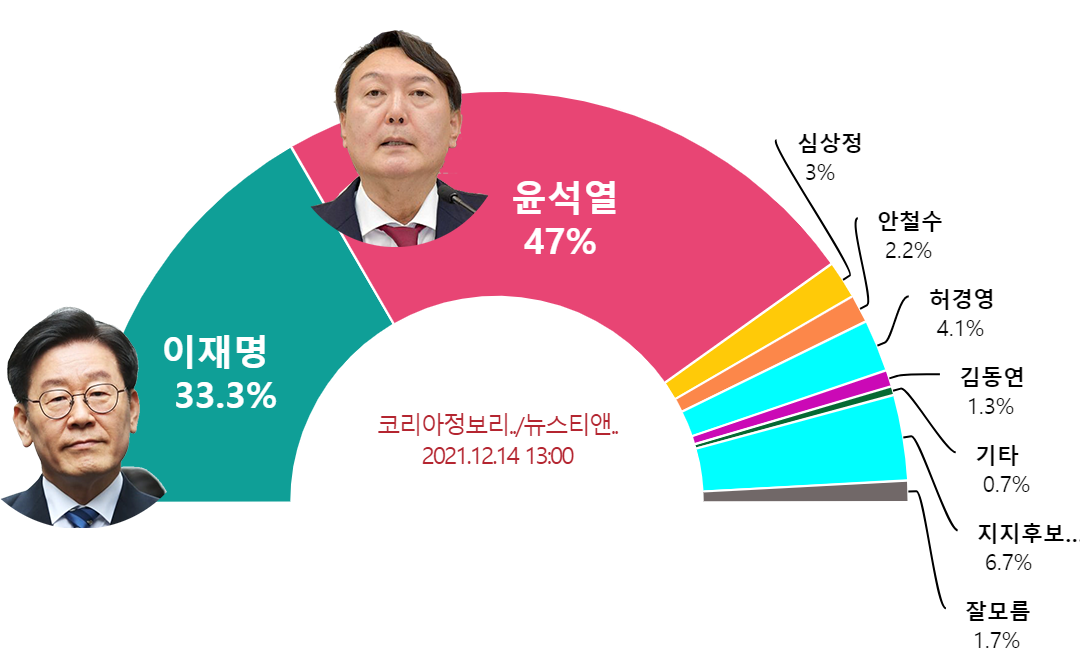 ¡ã´ëÀü±¤¿ª½Ã ´ëÅë·É Èĺ¸ ÁöÁöµµ ¢¹¡¸À±¼®¿¡¹47%,¡¸ÀÌÀç¸í¡¹33.3%,¡¸ÁöÁöÈĺ¸¾ø´Ù¡¹6.7%,¡¸Çã°æ¿µ¡¹4.1%,¡¸½É»óÁ¤¡¹3%,¡¸¾Èö¼ö¡¹2.2%,¡¸±èµ¿¿¬¡¹1.3%¼øÀ¸·Î ³ªÅ¸³ª