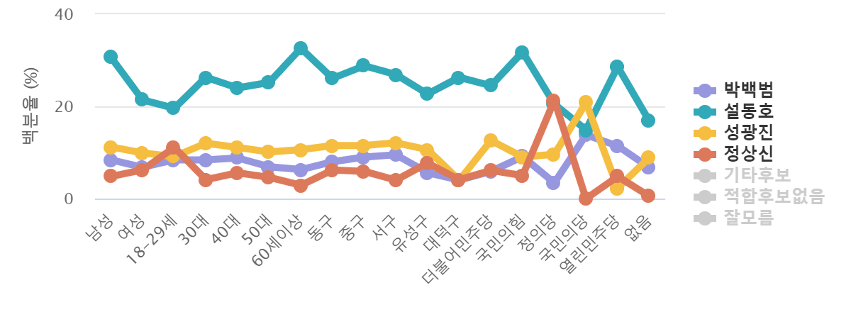 Áö¿ªº° ÀÀ´ä¿¡¼ "µ¿±¸"Áö¿ªÀº¡¸¼³µ¿È£¡¹(26.1%),¡¸À߸𸧡¹(17.7%),¡¸ÀûÇÕÈĺ¸¾øÀ½¡¹(16.1%)À̸ç, "Áß±¸"Áö¿ªÀº¡¸¼³µ¿È£¡¹(28.8%),¡¸À߸𸧡¹(18.9%),¡¸ÀûÇÕÈĺ¸¾øÀ½¡¹(18.7%), "¼±¸"Áö¿ªÀº¡¸¼³µ¿È£¡¹(26.9%),¡¸À߸𸧡¹(17.2%),¡¸ÀûÇÕÈĺ¸¾øÀ½¡¹(17%), "À¯¼º±¸"Áö¿ªÀº¡¸À߸𸧡¹(23%),¡¸¼³µ¿È£¡¹(22.7%),¡¸ÀûÇÕÈĺ¸¾øÀ½¡¹(20.4%), "´ë´ö±¸"Áö¿ªÀº¡¸À߸𸧡¹(26.8%),¡¸¼³µ¿È£¡¹(26.3%),¡¸ÀûÇÕÈĺ¸¾øÀ½¡¹(24.7%)¸¦ ±â·ÏÇß´Ù.