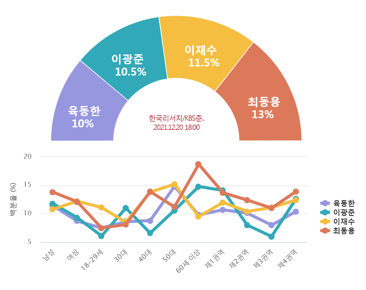 Áö¿ªº° ÀÀ´ä¿¡¼ "Á¦1±Ç¿ª"Áö¿ªÀº¡¸À̱¤ÁØ¡¹(14.1%),¡¸ÃÖµ¿¿ë¡¹(13.7%),¡¸ÀÌÀç¼ö¡¹(12%)À̸ç, "Á¦2±Ç¿ª"Áö¿ªÀº¡¸ÃÖµ¿¿ë¡¹(12.4%),¡¸ÀÌÀç¼ö¡¹(10.4%),¡¸À°µ¿ÇÑ¡¹(10.1%), "Á¦3±Ç¿ª"Áö¿ªÀº¡¸ÀÌÀç¼ö¡¹(11.1%),¡¸ÃÖµ¿¿ë¡¹(11%),¡¸À°µ¿ÇÑ¡¹(8%), "Á¦4±Ç¿ª"Áö¿ªÀº¡¸ÃÖµ¿¿ë¡¹(13.9%),¡¸À̱¤ÁØ¡¹(12.6%),¡¸ÀÌÀç¼ö¡¹(12.4%)·Î ³ªÅ¸³µ´Ù.