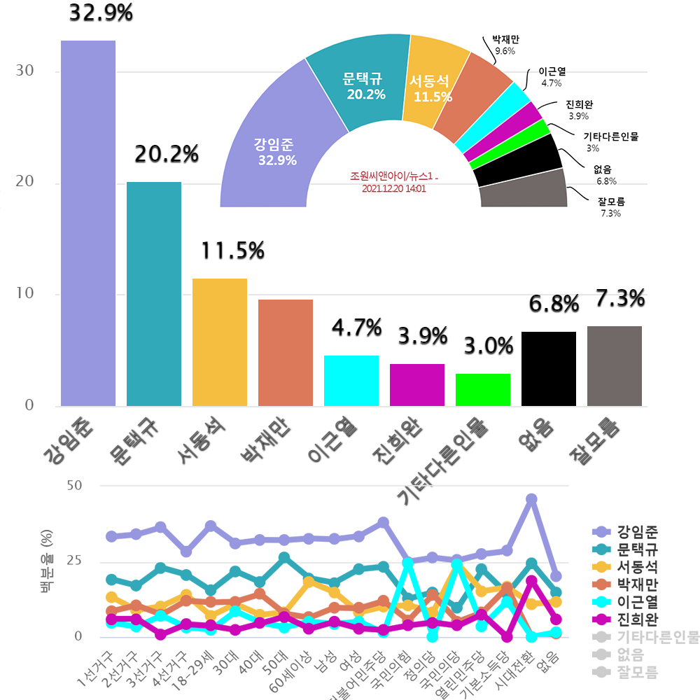 Â÷±â ±º»ê½ÃÀ塦°­ÀÓÁØ32.9%, 2À§ ¹®ÅñÔ(20.2%)¿¡ 12.7%p Â÷ÀÌ·Î ¾Õ¼­