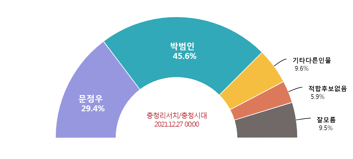 ±Ý»ê±º¼ö ¹Ú¹üÀÎ vs ¹®Á¤¿ì¾çÀÚ °¡»ó´ë°á Á¶»ç¿¡¼ ¡¸¹Ú¹üÀΡ¹ÀÌ 45.6%,¡¸¹®Á¤¿ì¡¹ÀÌ 29.4%·Î ³ª¿Ô´Ù. ¹Ú¹üÀÎ Àü Ãæ³²µµ ³ó¸²±¹ÀåÀº 45.6%·Î 2À§ ¹®Á¤¿ì ±Ý»ê±º¼ö¿¡ 16.2% Æ÷ÀÎÆ® ÀÌ»ó Å« Â÷ÀÌ·Î ¾Õ¼´Â °ÍÀ¸·Î ³ªÅ¸³µ´Ù.
