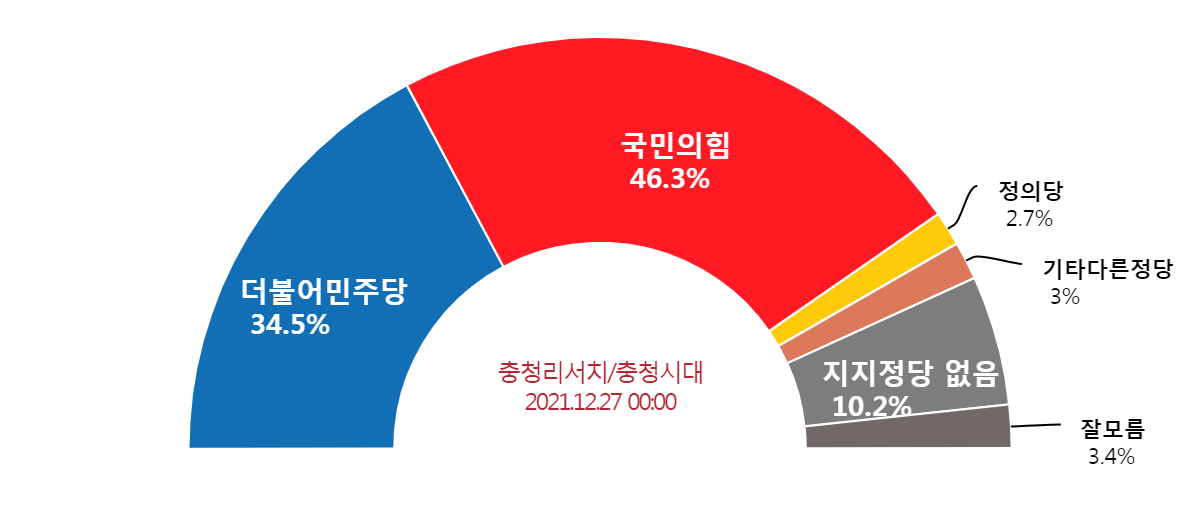 ±Ý»ê±º Á¤´çÁöÁöµµ¡¥±¹¹ÎÀÇÈû 46.3%, ´õºÒ¾î¹ÎÁÖ´ç 34.5%