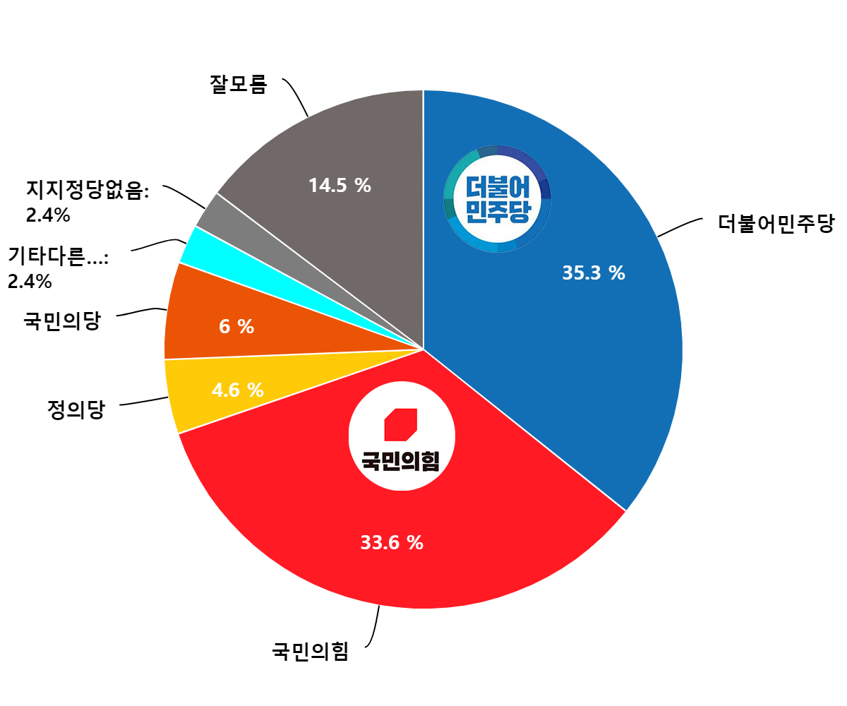 ¡ã ¾È¾ç½Ã Á¤´çÁöÁöµµ¡¥´õºÒ¾î¹ÎÁÖ´ç 35.3%, ±¹¹ÎÀÇÈû 33.6%, ±¹¹ÎÀÇ´ç 6%, Á¤ÀÇ´ç 4.6%