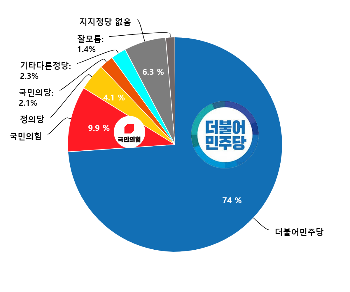 ¡ã ÀÍ»ê½Ã Á¤´çÁöÁöµµ¡¥´õºÒ¾î¹ÎÁÖ´ç 74%, ±¹¹ÎÀÇÈû 9.9%, Á¤ÀÇ´ç 4.1%, ±¹¹ÎÀÇ´ç 2.1%