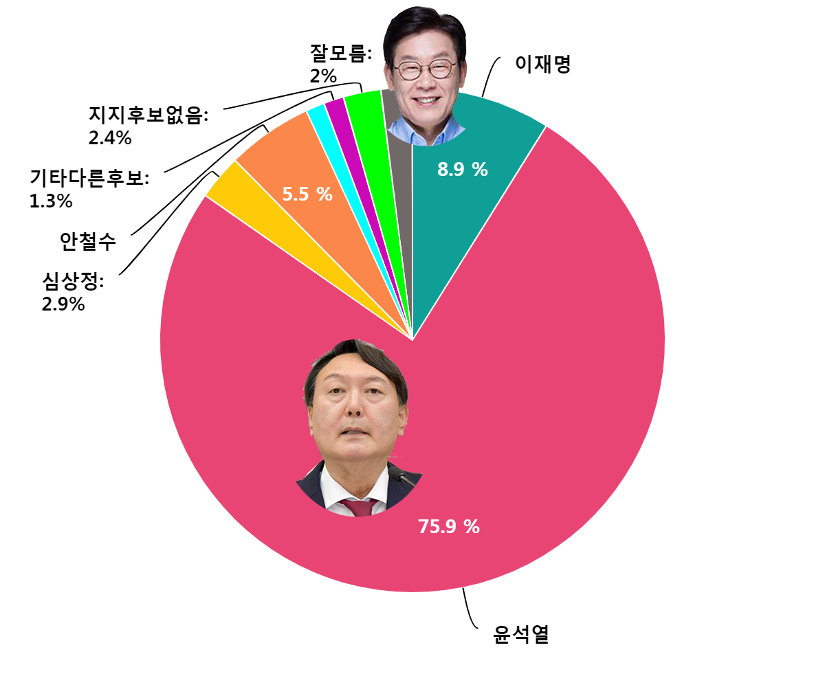 ¡ã ±ºÀ§±º Â÷±â´ë¼±Èĺ¸ ÁöÁöµµ¡¥À±¼®¿ 75.9%, ÀÌÀç¸í 8.9%, ¾Èö¼ö 5.5%, ½É»óÁ¤ 2.9%, ±èµ¿¿¬ 1.2%